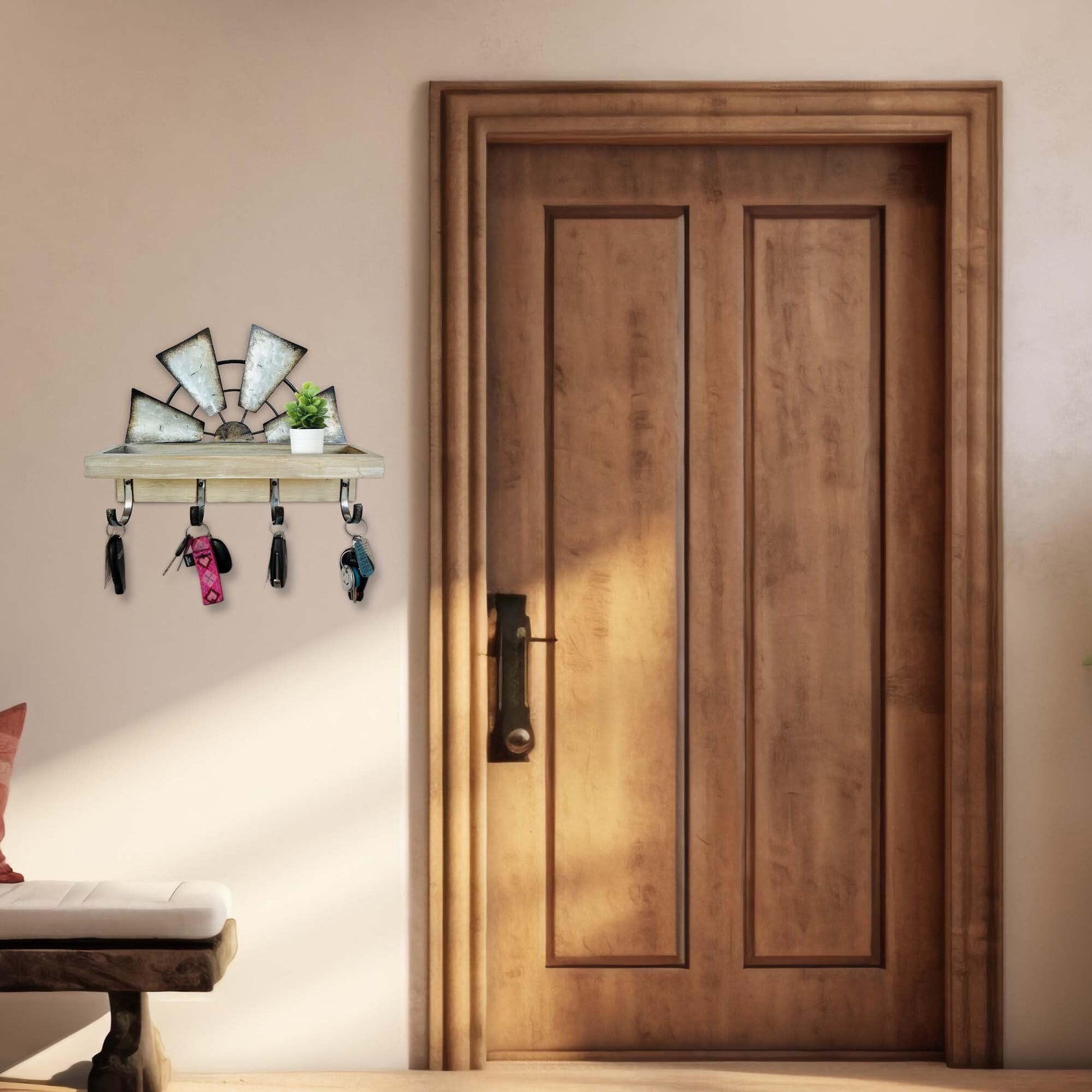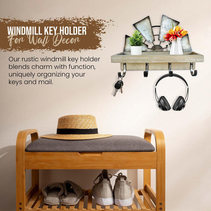 Rooty Heart Windmill Key Holder for Wall Mount, Key and Mail Holder for Wall with Key Shelf, Keys Holder on Wall, Farmhouse Decor