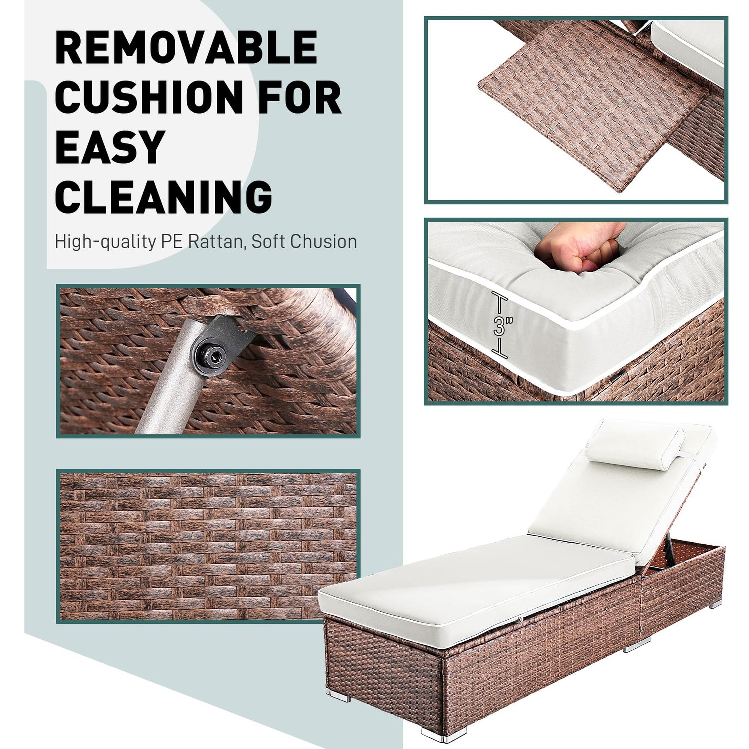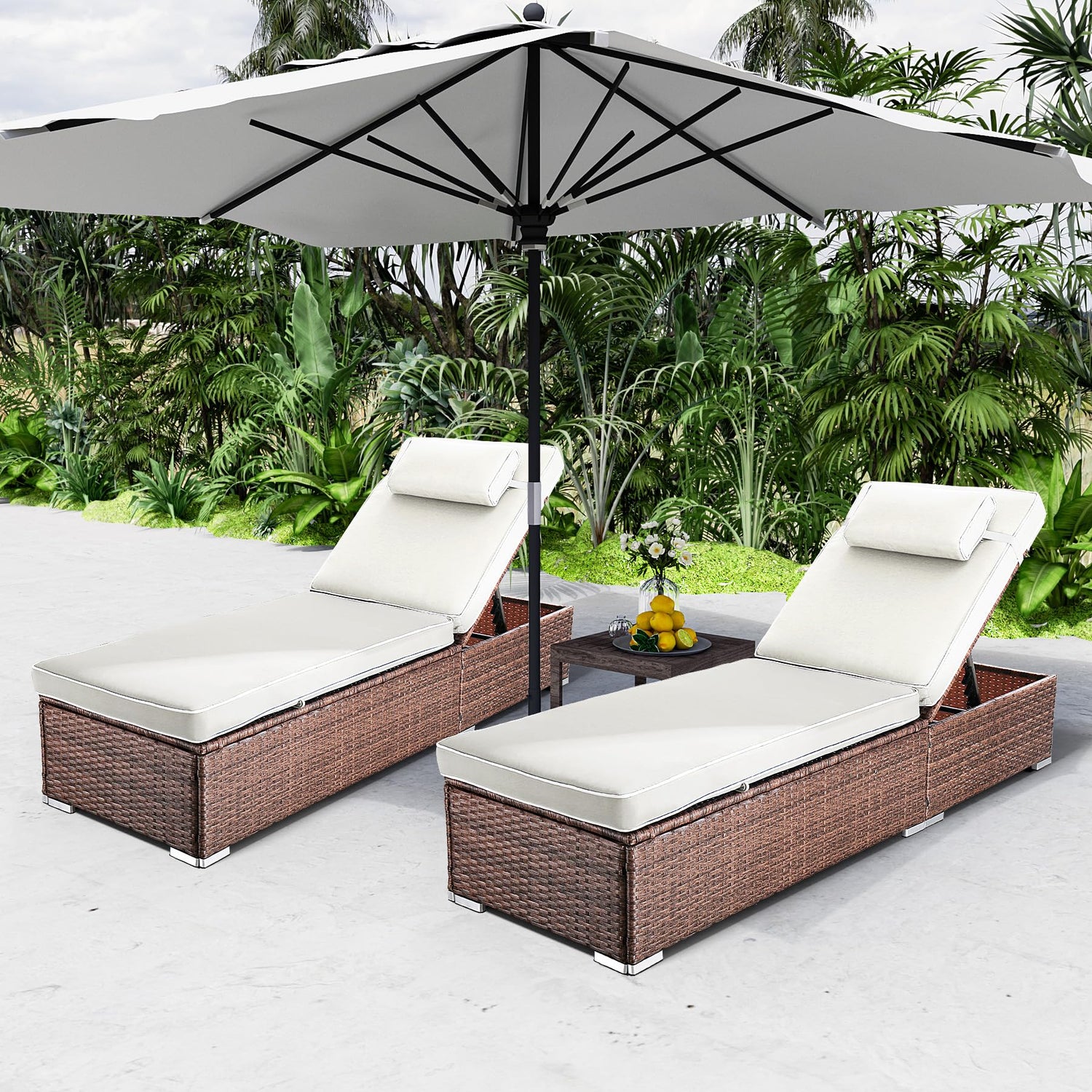 - 【Ontemporary Woven Elegance】Crafted with premium PE Rattan, our poolside recliners blend modern aesthetics with outdoor functionality. The intricately woven texture offers while maintaining airflow for cool relaxation - perfect for tropical climates or sunny backyard retreats.