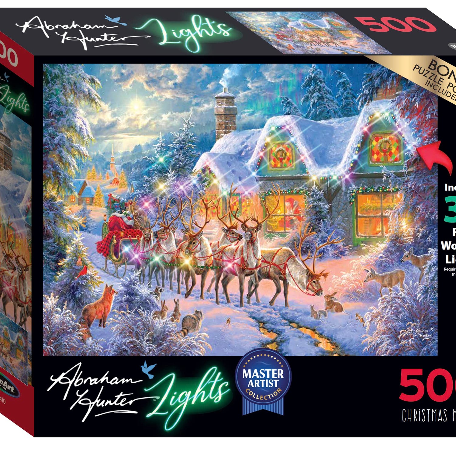 RoseArt - Abraham Hunter Light Up - Christmas Magic - 500 Piece Jigsaw Puzzle for Adults
