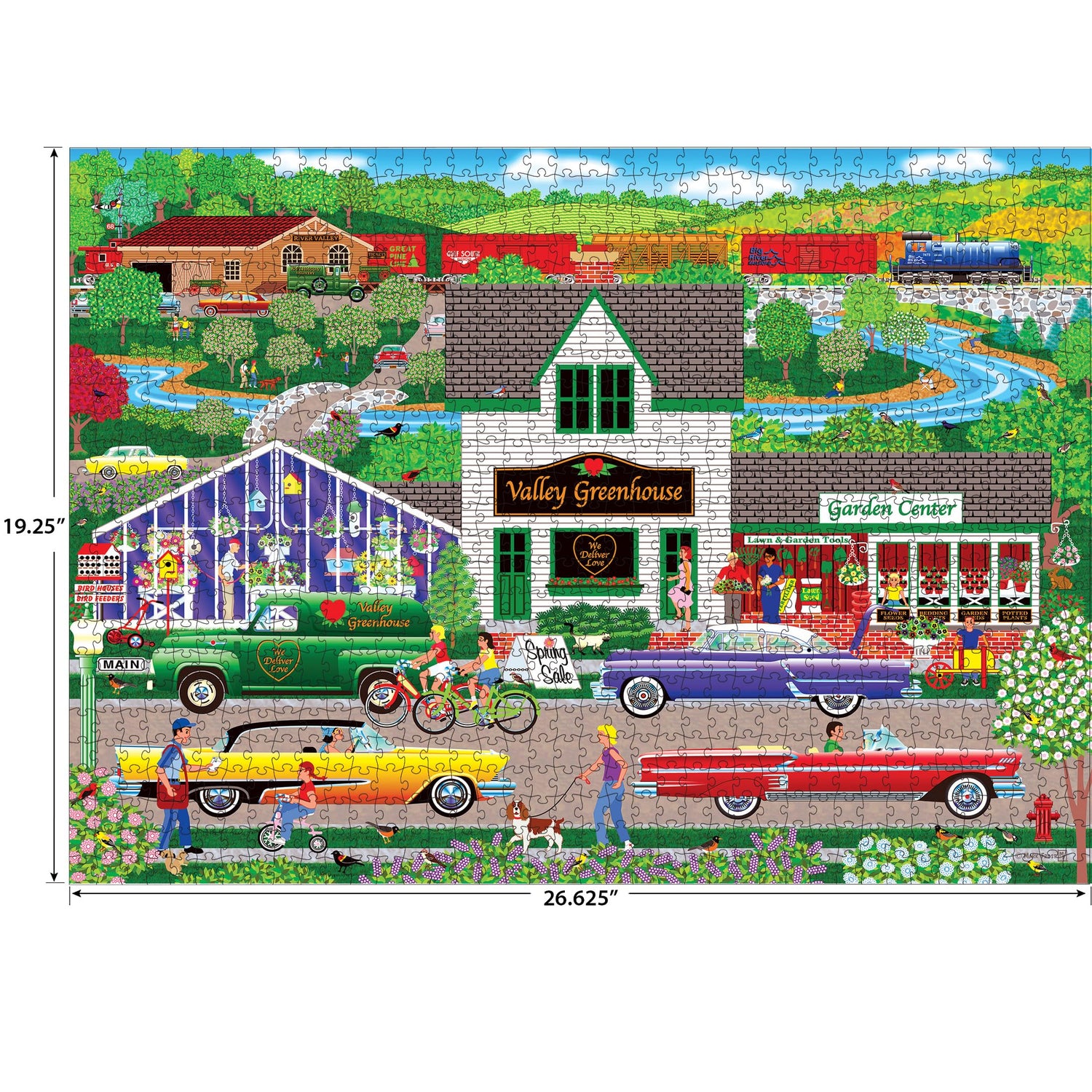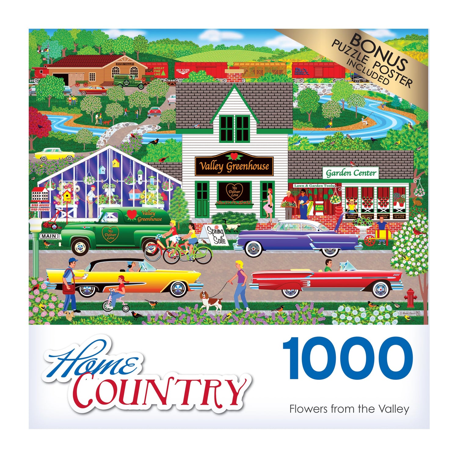 Details: Discover the charm of country living with the Home Country 1000-piece jigsaw puzzle "Flowers from the Valley" by Mark Frost. This puzzle features an Americana view of a Greenhouse and Garden Center set in a picturesque country landscape. Made from sturdy premium puzzle board, you’ll feel the quality and weight in every piece, ensuring a satisfying and high-quality puzzling experience.Each piece of this puzzle is fully interlocking, providing a beautiful "snap" as you assemble the vibrant and detailed scene. "Flowers from the Valley" captures the essence of a quaint countryside, filled with blooming flowers and lush greenery, making it an ideal puzzle for those who appreciate both engaging imagery and superior craftsmanship. Measuring 20" x 27" when completed, this puzzle is not only a delightful challenge but also a stunning piece of art to display in your home. Perfect for a relaxing evening or as a thoughtful gift, the Home Country series offers hours of entertainment and a touch of rural charm. Dive into the intricate details and vibrant colors of "Flowers from the Valley" and bring the beauty of a country garden into your home.