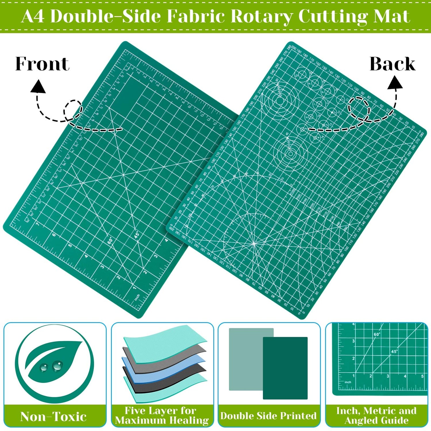 - Self Healing Sewing Mat – A4 rotary cutting mat for sewing made of 5-layer self healing PVC material to protect your work surface and keep the blade sharpness, compatible with rotary cutter and straight blades. This rotary cutting mat for crafts is double sided printed with inches, metric gridlines and different angles help you to cut precisely, perfect sewing cutting mat for crafters