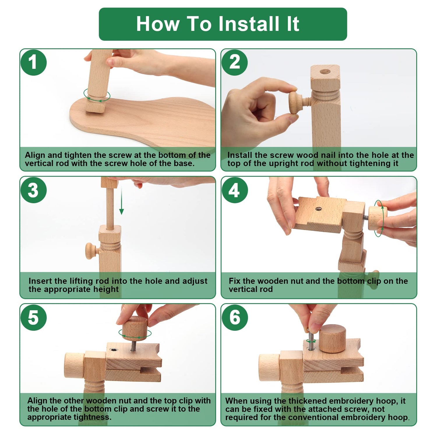 - [ Ideal for Beginner ]: The product is easy to install, easy to use, uncomplicated accessories, and has flexible height adjustment. It is the preferred tool for embroidery beginners of all ages. (the detailed installation method is shown in the figure).