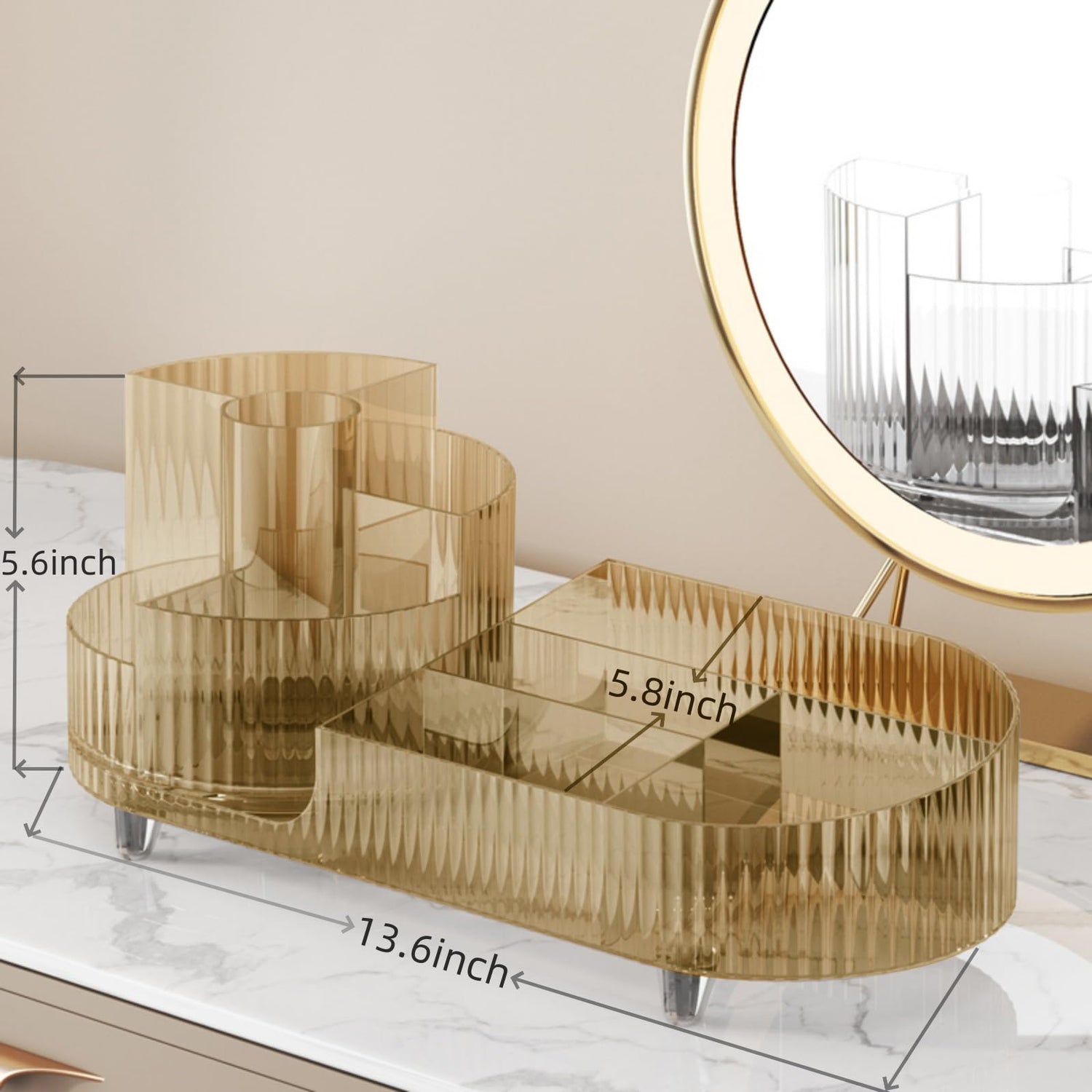 Rotating makeup organizer,Large Capacity Cosmetic Display Case, easy to hold all of your makeup products, at least 20 makeup brushes/eyeliner,10 lipsticks,8 skincare products(Crystal Amber)