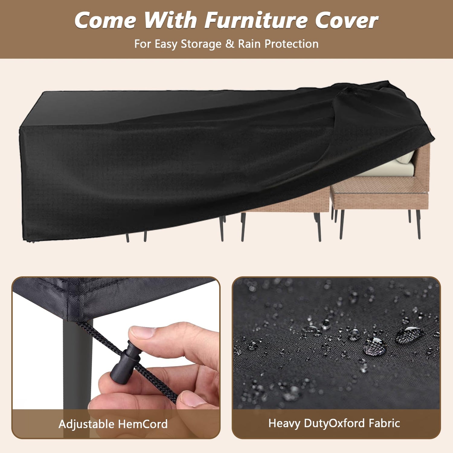 - Bonus Weather Protection: Enhance your 8-piece outdoor sectional set with a complimentary premium Oxford cloth cover. This waterproof and dust-proof protector ensures your wicker patio furniture stays in top condition, shielding it from the elements year-round