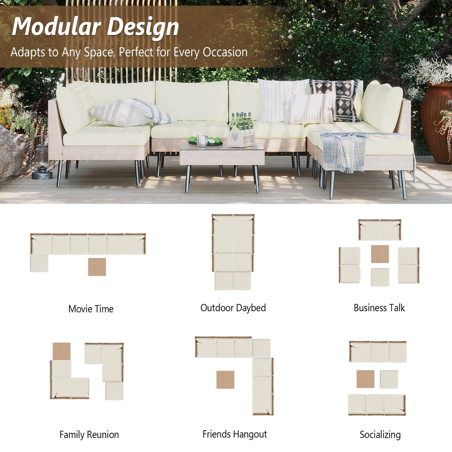 - Modular Design Flexibility: The modular design of this outdoor sectional allows you to customize your patio setup according to your needs. Whether you're looking to create an intimate conversation area or a spacious lounge, the patio furniture set can be configured in multiple ways