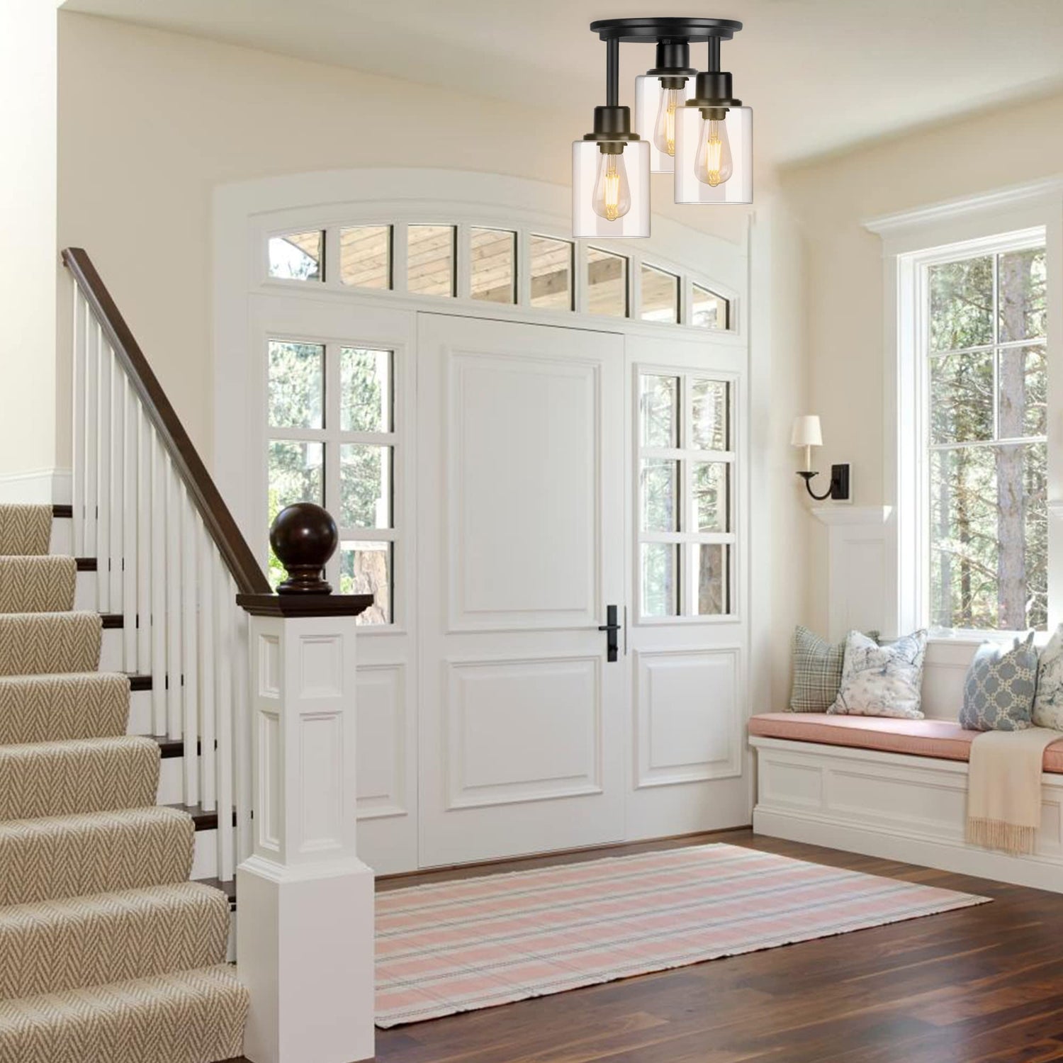 - ✅Rustic Ceiling Light Design: A vintage design mixed with industrial and contemporary elements, oil-rubbed black finish, and clear high-quality glass shades, these foyer light fixtures complement any décor, which is perfect for kitchen, entrance, hallway, dining room, living room, laundry room, balcony and more.