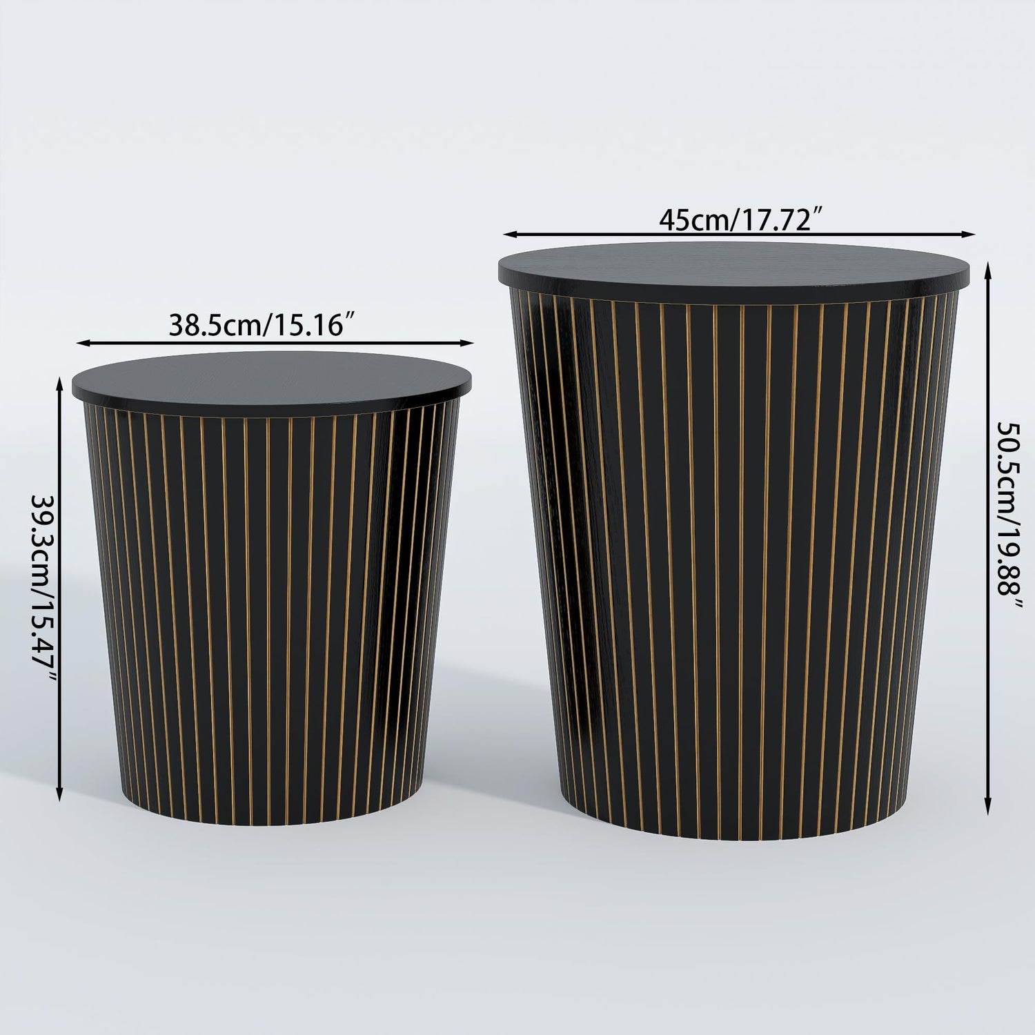 Round Coffee Table Set,2-Piece Modern Farmhouse Living Room End Table Set, Nesting Table Round Natural Finish for Living Room (Black, 17.72'')