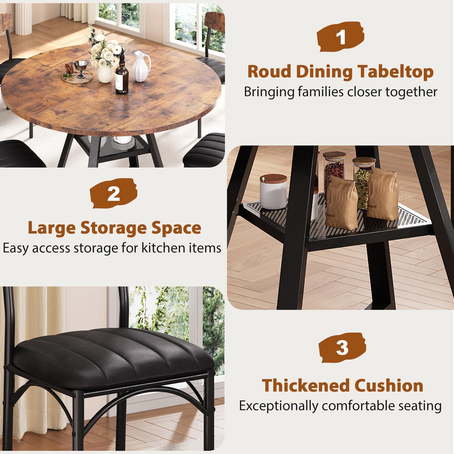 - EXTRA LARGE STORAGE SPACE: A Thoughtfully designed storage shelf is for organizing tableware and kitchen essentials, keeping them easily within reach. It helps maintain a clean, tabletop while providing convenient access to everything you need. Round dining table maximizes the usable area of the dining table, a 42-inch round dining table set for 4, ideal for family meals and gatherings.