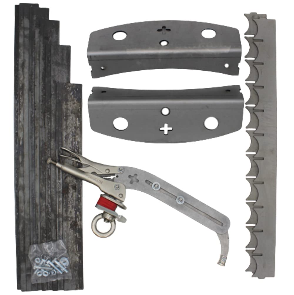 Details: The Round Table will sit on top of a 55 gallon drum or Behrens 17 gal. wash tub that is filled with water, this creates a very economical and effective Plasma Table. All of the sparks/slag and most of the smoke is captured with a 6" air gap above the water. We include an adjustable clamp to firmly hold a straight edge, guide and our Plasma Stencils. This allows you to use both hands for guiding your plasma cutter to make precise cuts. The usable cutting area is 22".