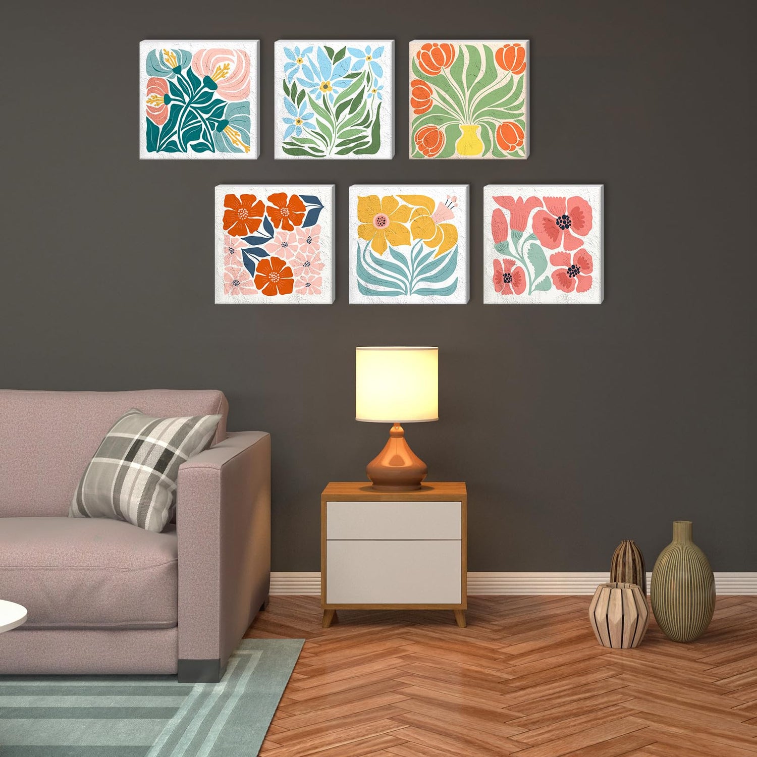 RoundFunny 8 Set Paint by Numbers Kit for Adults with 8x8 Inch Mini Simple Painting Canvas Wooden Frame Easel Acrylic Paints Brushes Funny Numbers Drawing Kit for Gift Home Wall Decor(Simple Blossom)