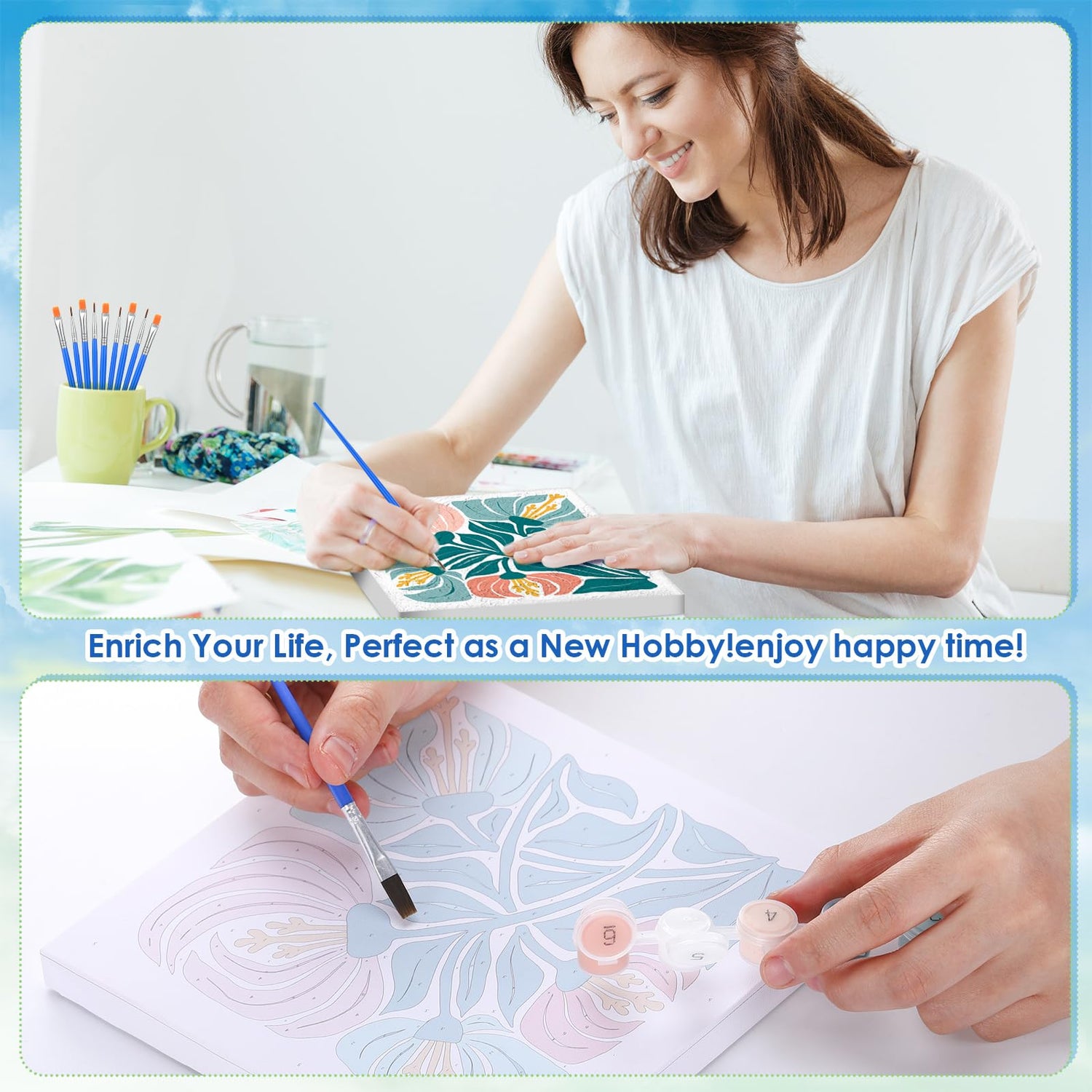 - Comprehensive Art Set for Beginners: dive into creativity with our 8-piece flower paint by numbers kit, designed for all skill levels; Each set includes vibrant acrylic paints, a linen canvas, wooden frame easel, and two precision brushes; Whether you're an adult or a beginner, this kit enhances your painting skills while delivering stunning, professional-looking flower artwork