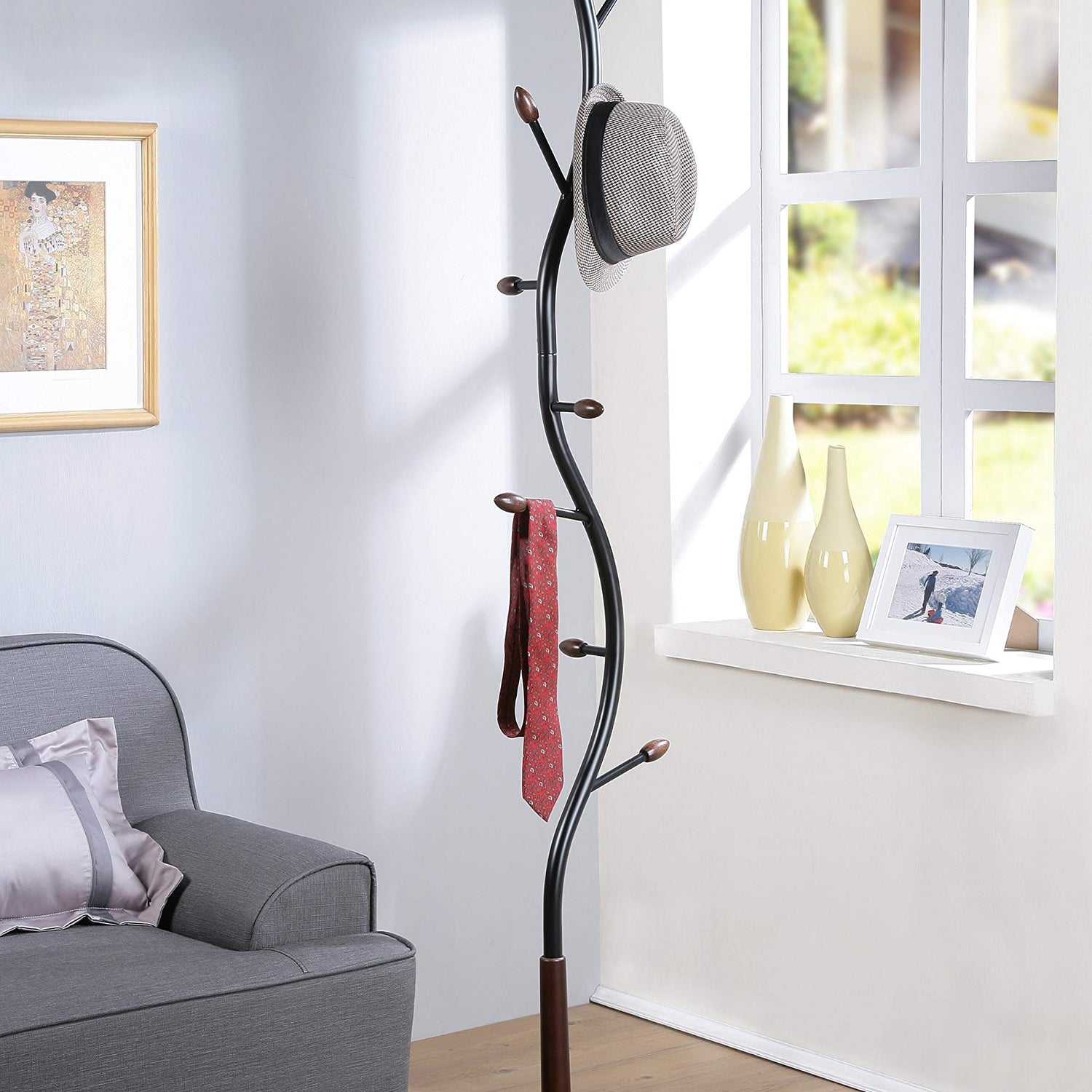 Roundhill Furniture Arles Metal Black and Walnut Standing Coat Rack