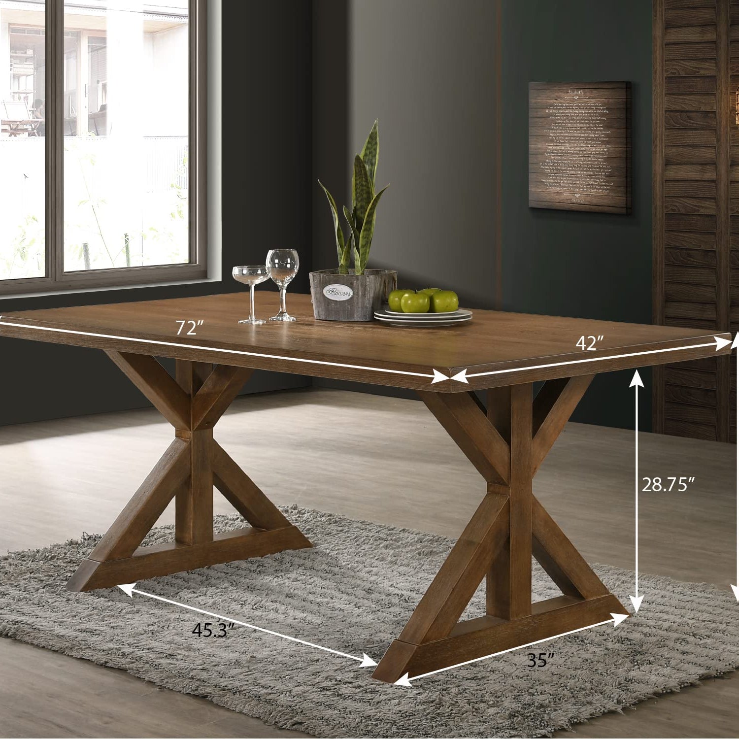 Roundhill Furniture Enna Morden Farmhouse Wood Trestle Dining Table, Brushed Driftwood