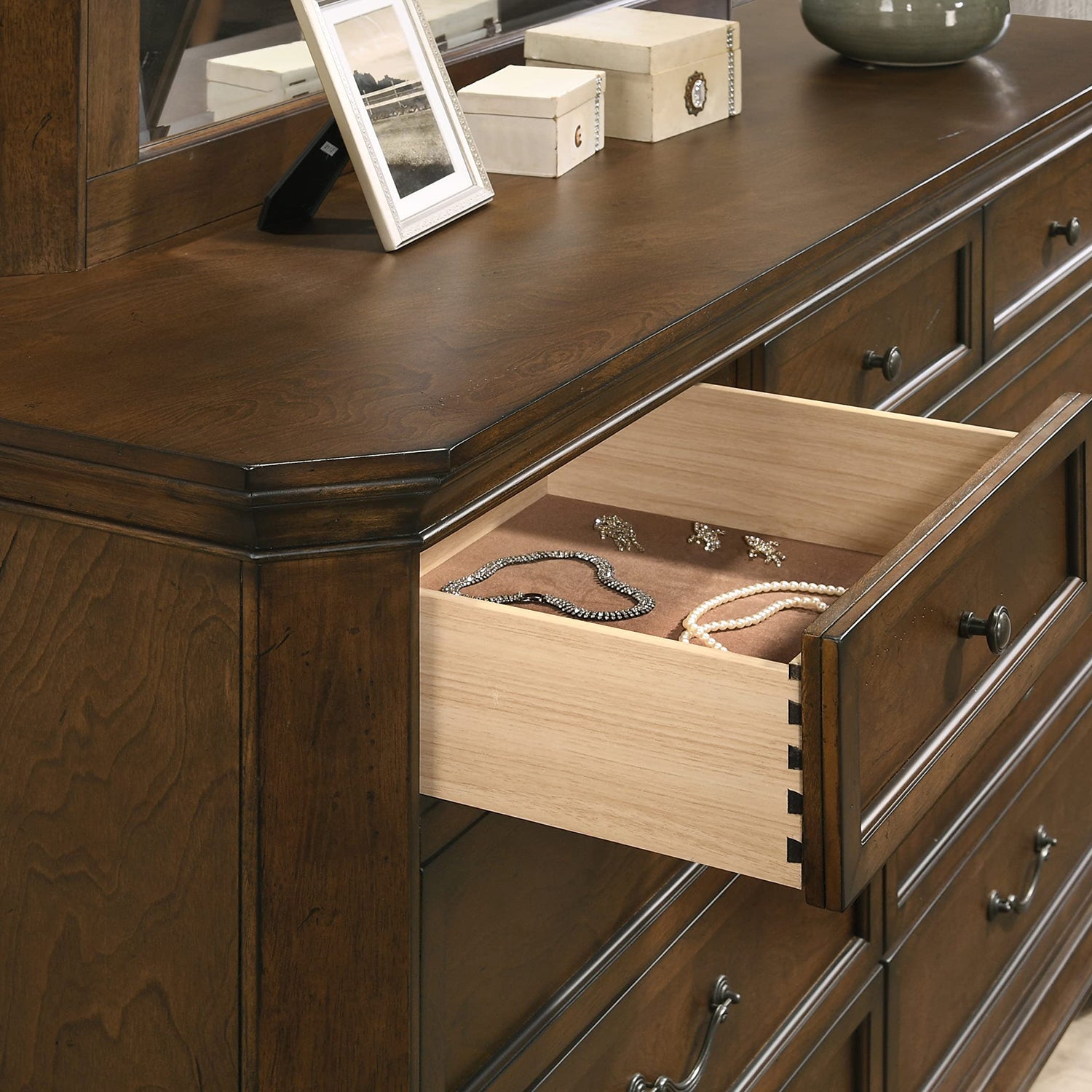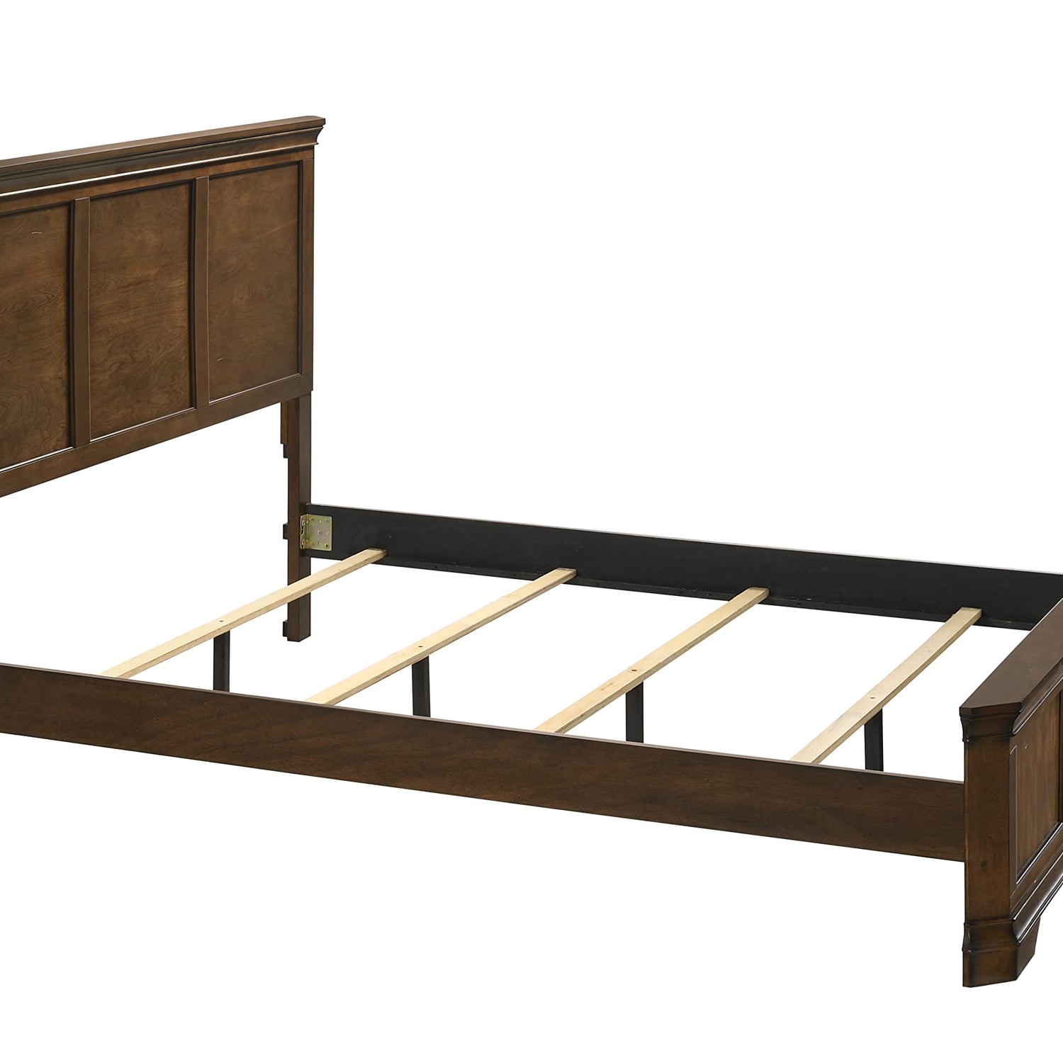 Details: The vintage-inspired Maderne Traditional Wood Panel Bedroom Set, Antique Walnut Finish is an elegant way to add an elegant appeal to your bedroom. This set is made from sturdy solid wood frame and MDF panels in a rich antique walnut finish. The bed features three panel design on both the headboard and footboard in antique walnut finish. This handsome bed features distinguished recessed picture frame moldings. Spacious sliding drawers give you plenty of room for your socks, pants, and anything else you might need to get ready for the day. The sleek antique pewter finished metal handles add a level of elegant appeal that elevates any bedroom. Details like the visible wood grain and short blocked legs finish the look.