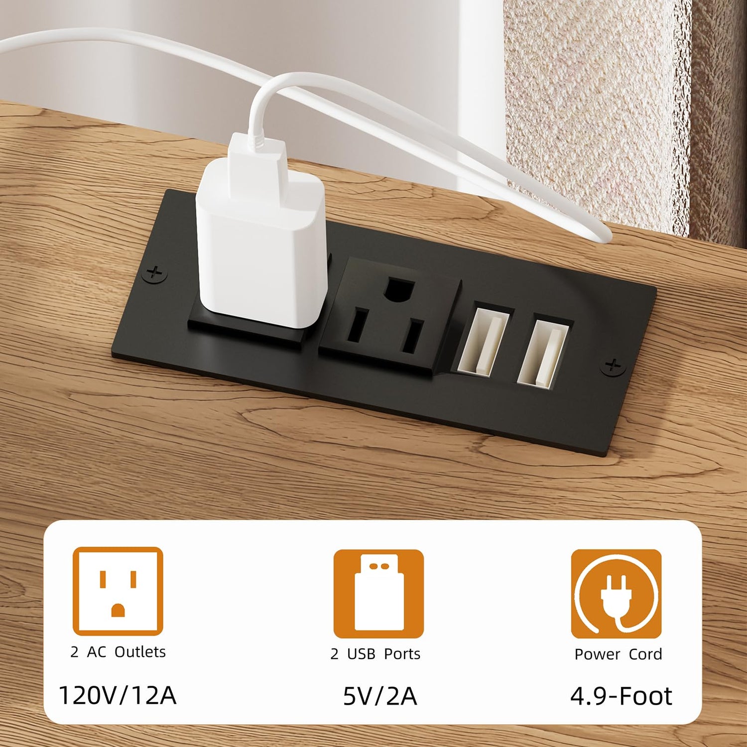 - Convenient Charging Station: This wooden bedside table has a handy built-in charging area with 2 usb ports and 2 power outlets. (phones, tablets, wireless headphones, etc.) here. Place devices in the charging zone before bed and wake up to fully charged device
