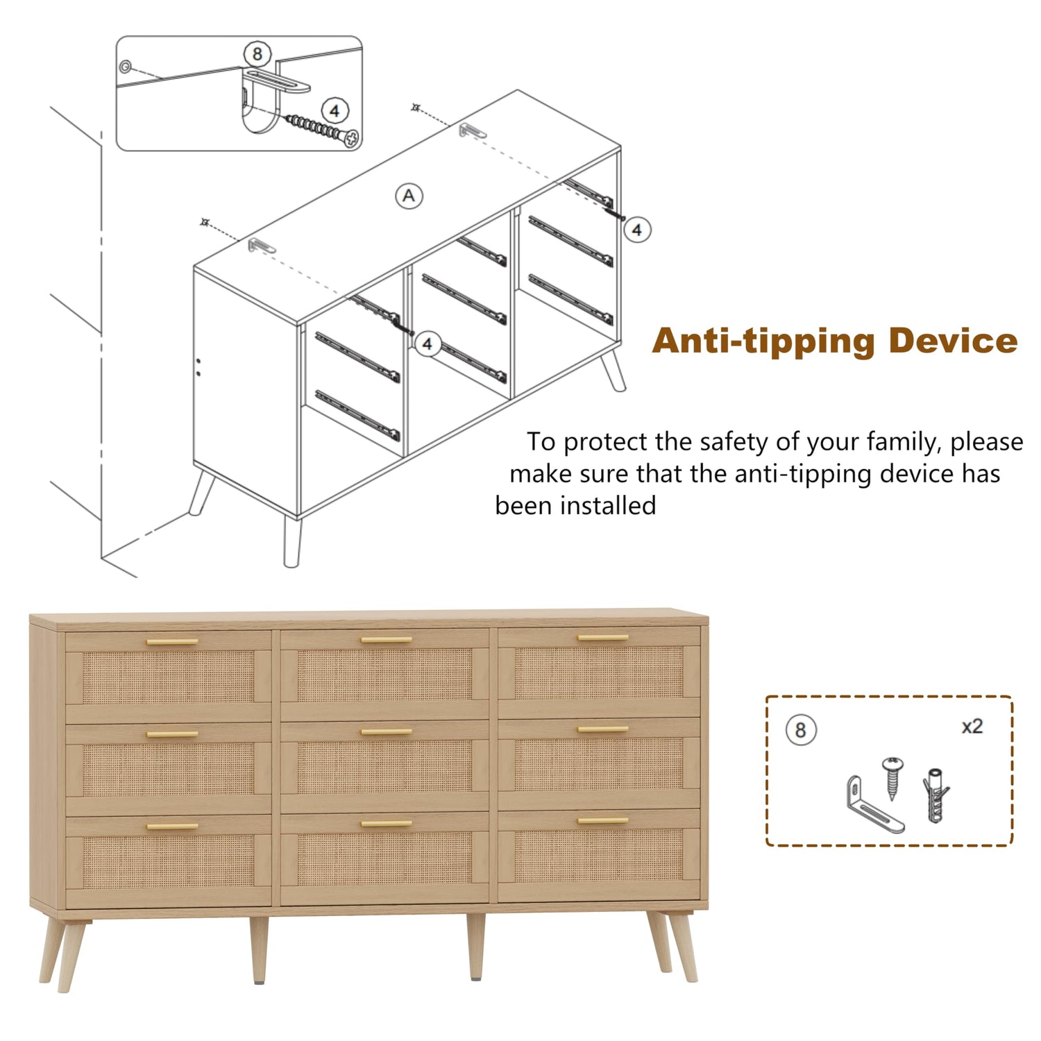 - Style Home: Equipped with woven rattan, while angled legs and golden handles, the drawer dresser will add a mid-century charming to your home. Use on its own or pair it with other rattan matching pieces from Airbuyhome