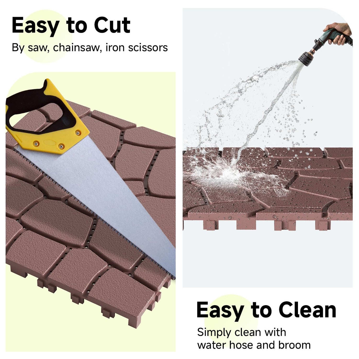 - 【Low Maintenance】The outdoor flooring is easy to clean. Just rinse dust and dirt off with water hose or sweep away with other cleaning tools. Ideal for lazy people or busy family to make your life more convenient with using our patio flooring