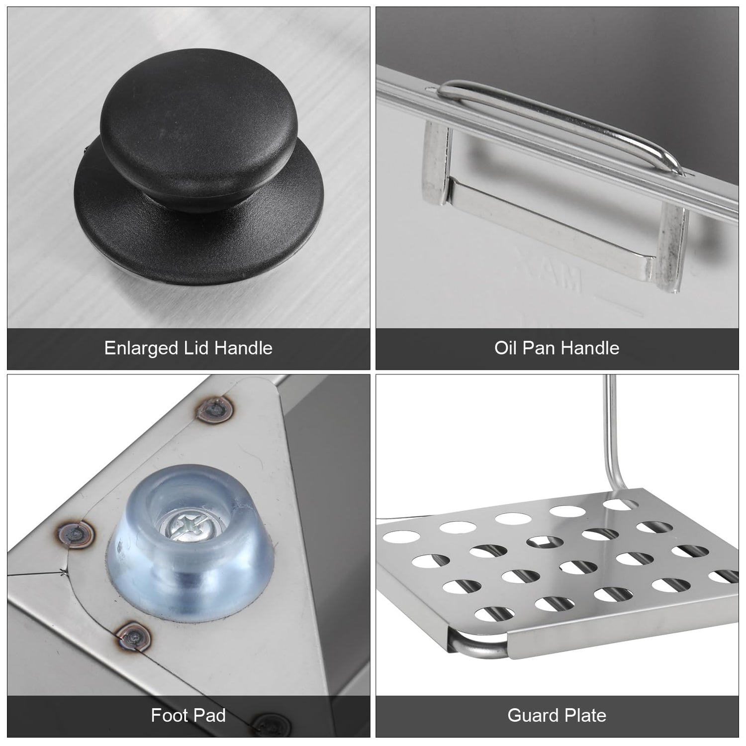 - DURABLE & EASY CLEANING:The countertop deep fryer, made of heavy duty stainless steel, is solid in construction. Thickened tank for durable use, can be detached for easy cleaning. (NOTE: There are white protective films on the surface that need to be removed before use. Please peel off the flms before use.)