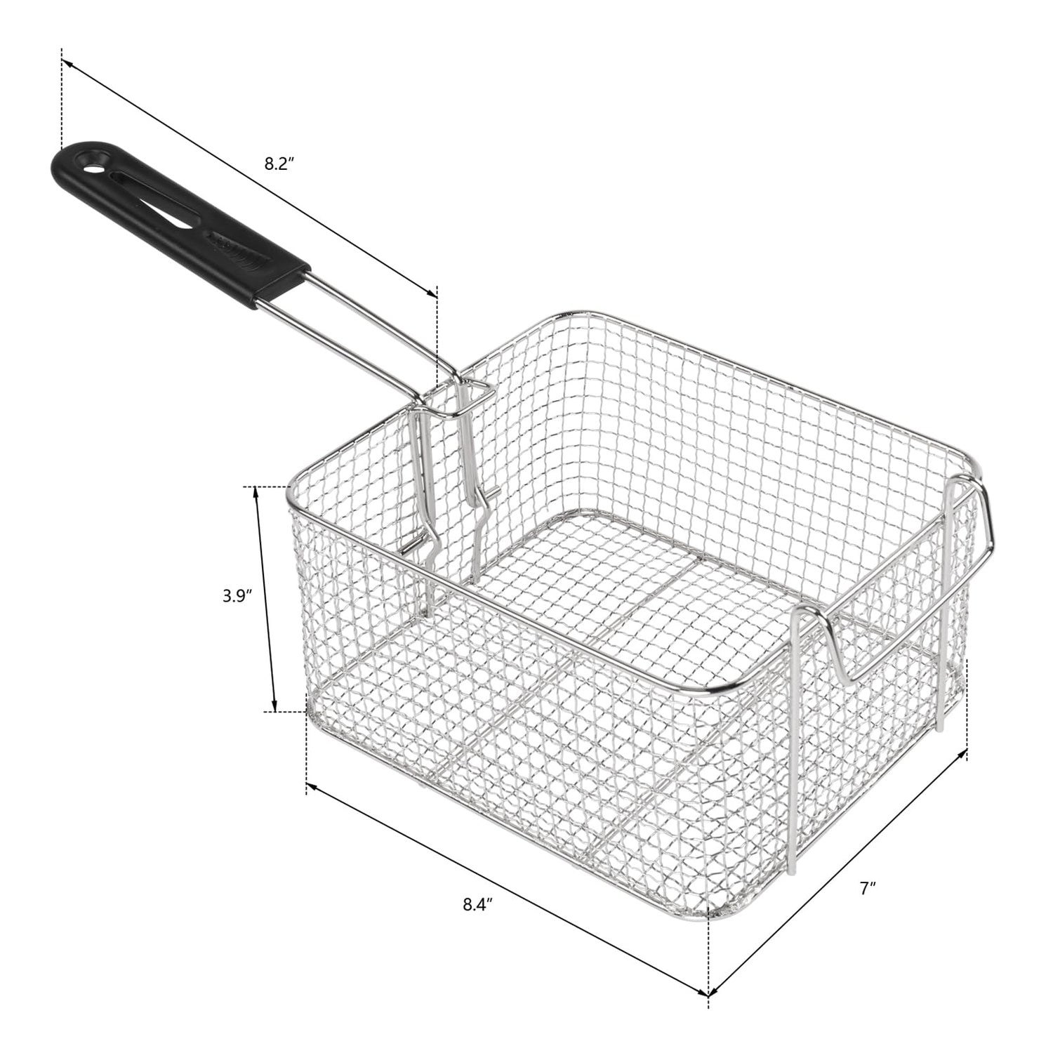 - SAFER: Lid prevents boiled oil splashing. And fryer basket with plastic handle prevents scalding of your hands and brings safe and easy operation. Heating pipe of the electric deep fryer distributes even and quick heat, and the temperature indicator light displays when the fryer is heating oil.