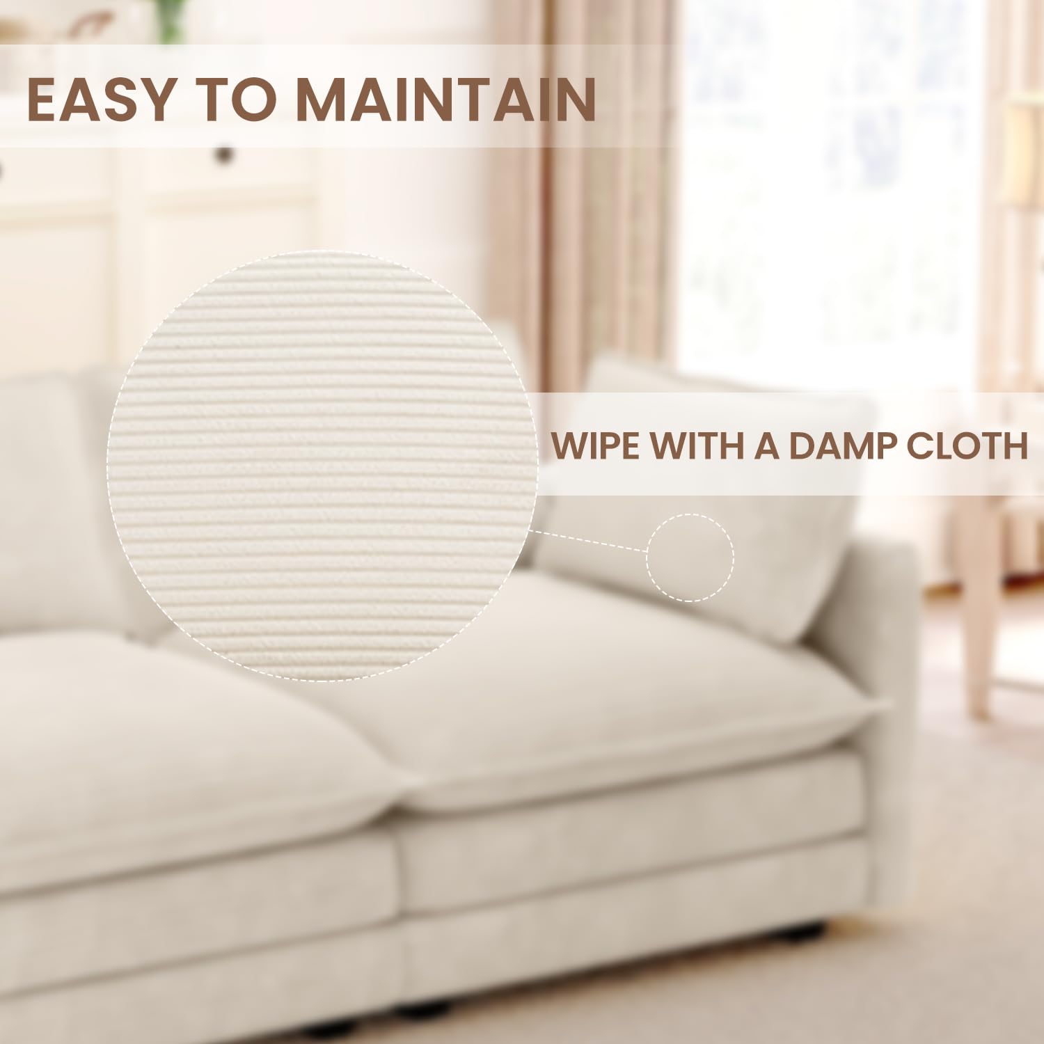 ROWHY 78'' Sectional 2 Seat Cloud Loveseat with 2 Throw Pillows, Modern Corduroy Love Seat, Cozy Sofa for Living Room, Office and Bedroom, Beige
