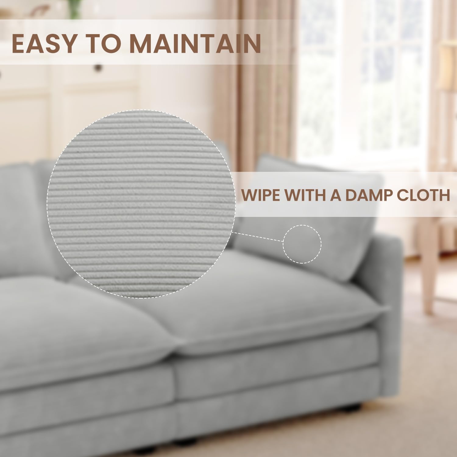 ROWHY 78'' Sectional 2 Seat Cloud Loveseat with 2 Throw Pillows, Modern Corduroy Love Seat, Cozy Sofa for Living Room, Office and Bedroom, Light Grey