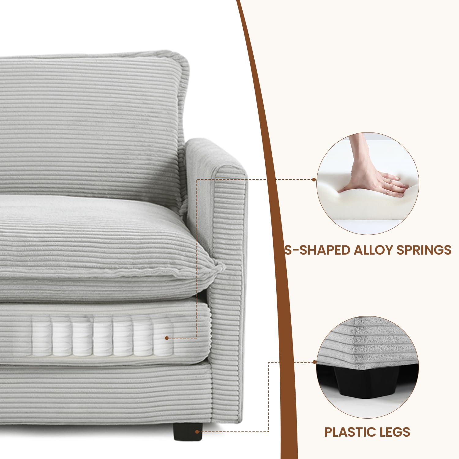 - High Elastic Sponge Filling: Hidden inside the corduroy fabric is high resilience sponge, you can fully feel the elasticity of the cushions when you sit on the sofa. The bulging backrests provide strong support for your back and lumbar area, enhancing your comfort