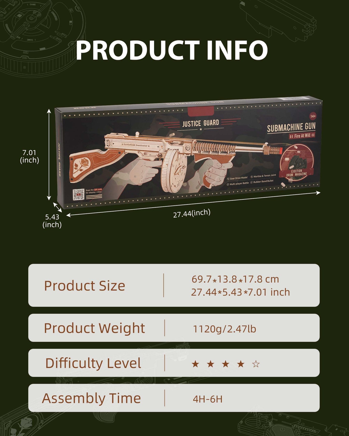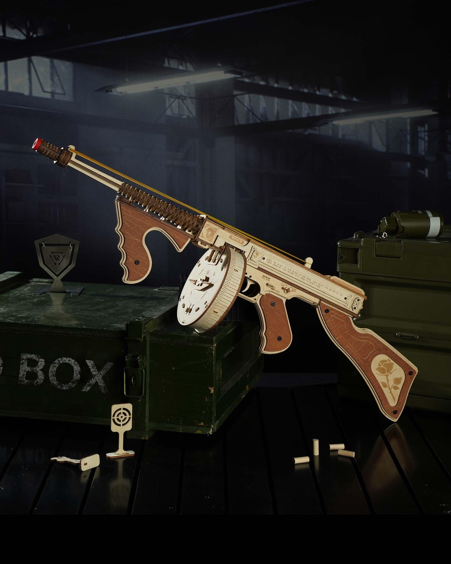 Introducing the RoWood Tommy Rubber Band Gun 3D Wooden Puzzle Model Kit, a stunning tribute to the iconic Thompson Submachine gun. This meticulously crafted model offers an engaging building experience for both adults and teens who relish the blend of creativity and craftsmanship.
