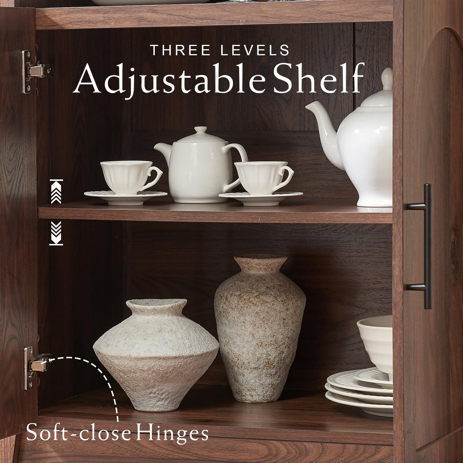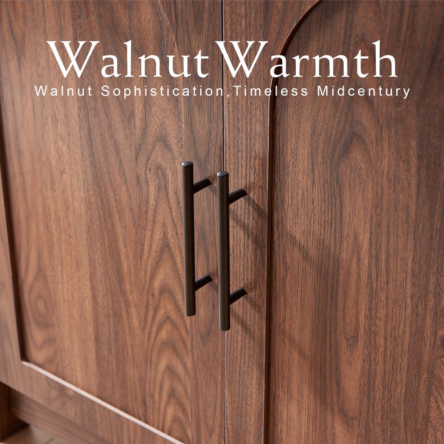 - Spacious & Customizable Storage - With five roomy tiers, this bookcase offers ample space for books, decor, and essentials. Adjustable shelves allow you to arrange items of various sizes, maintaining a well-organized and visually appealing look. The dual arched walnut-tone doors lend elegance and protect your items from dust, blending function and style seamlessly.