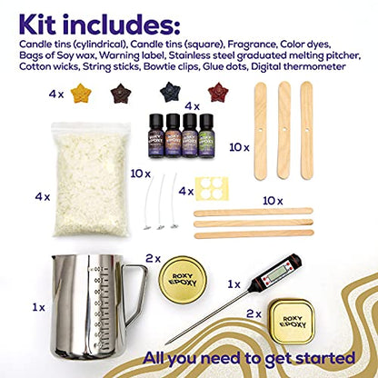 Roxy Epoxy DIY Candle Making Kit Gold - Complete Supplies Set to Make Your Own Candles - Includes 2lb Soy Wax, Candle Tins, Fragrances, Color Dyes,