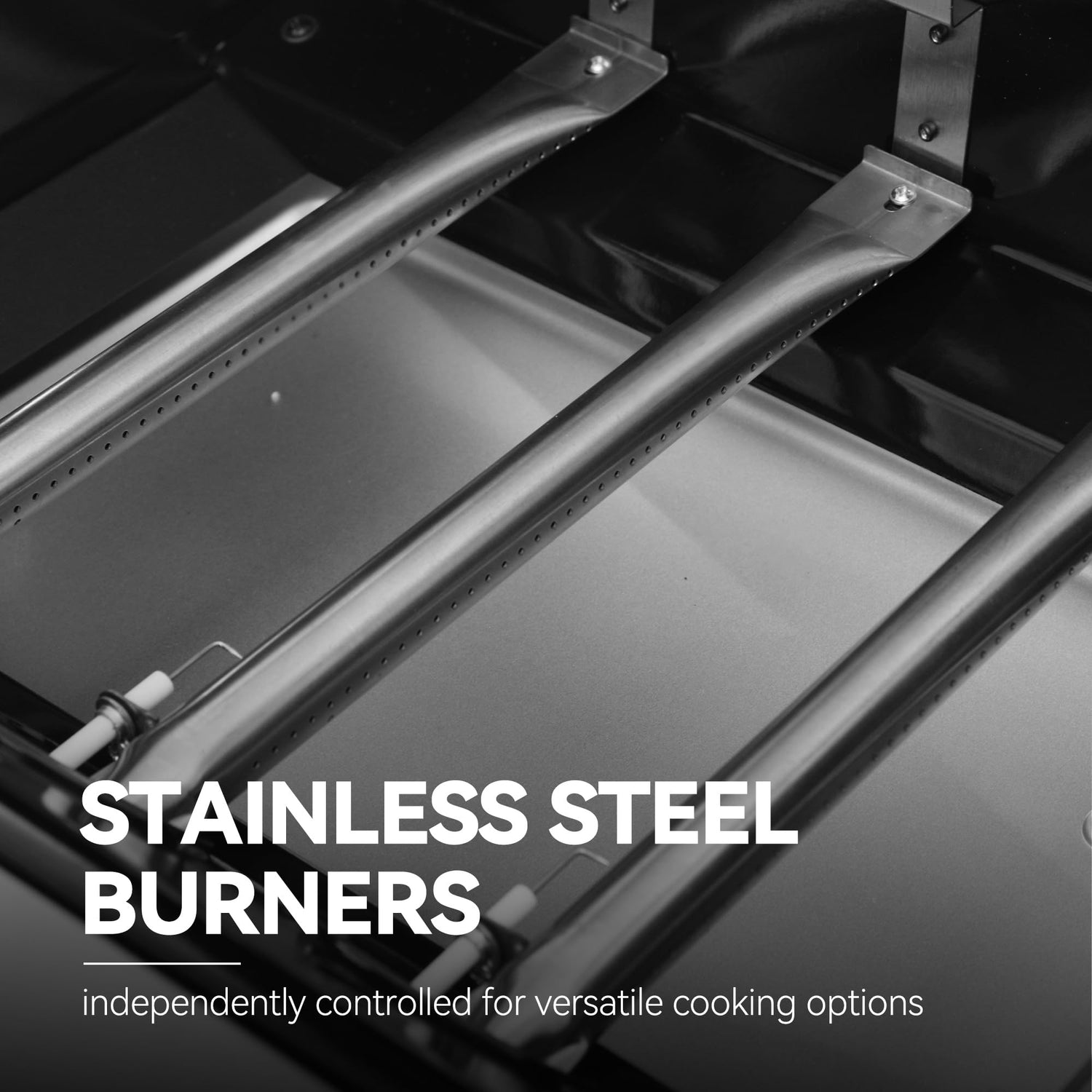 - Stainless Steel Burners: Featuring four stainless steel burners generating 34,000 BTU, each can be independently controlled for management of cooking temperatures across different zones on the grill surface