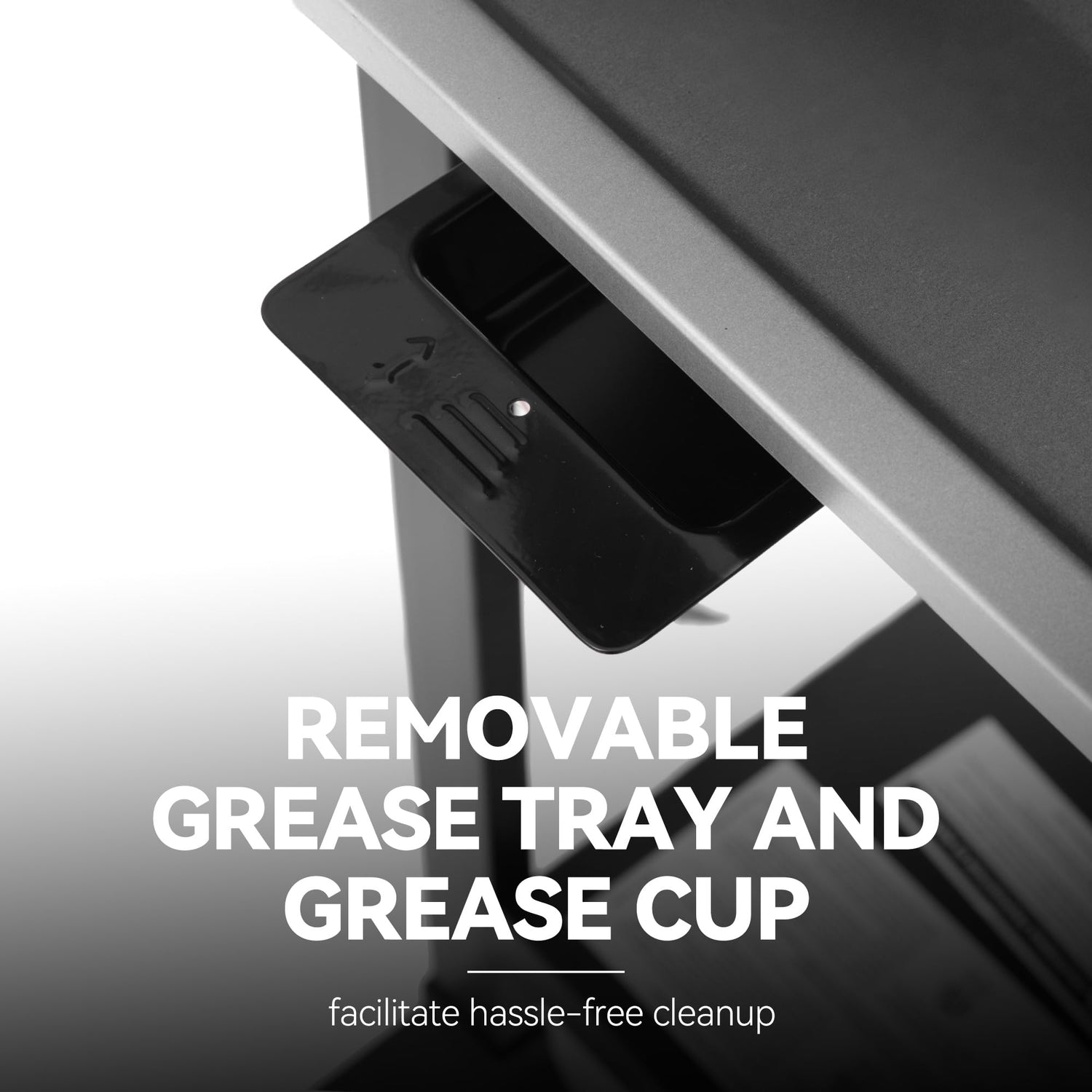- Simple Cleaning: Equipped with a removable grease tray and grease cup, both designed to gather residues and drippings for effortless cleanup