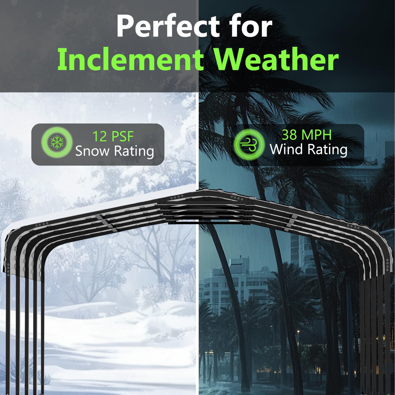 - 【Weather Resistance】 Industrial-grade steel supports and a galvanized steel roof offer strong corrosion resistance, protecting your vehicles from harsh weather conditions.