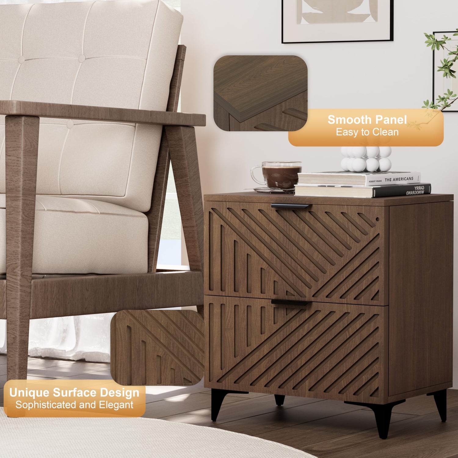 Royal Windsor Fluted Nightstand Set of 2 with 2 Drawers, Side End Table, Small Accent Storage Cabinet,Modern Night Stand Bedside Table for Bedroom, Brown