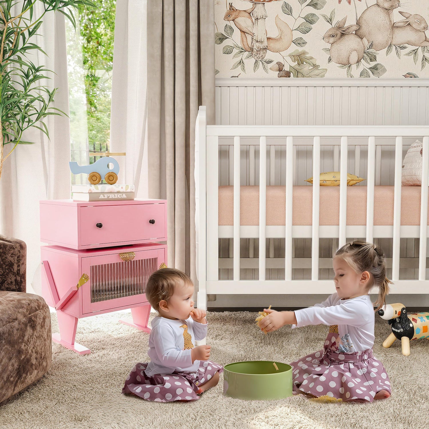 - 360° Rotating Drawer & Ample Storage: 360° silent rotating top drawer for easy bi-directional access. The spacious lower drawer features a smooth metal-hinged door that opens effortlessly. Additionally, the pull-down design enhances safety, especially for children.