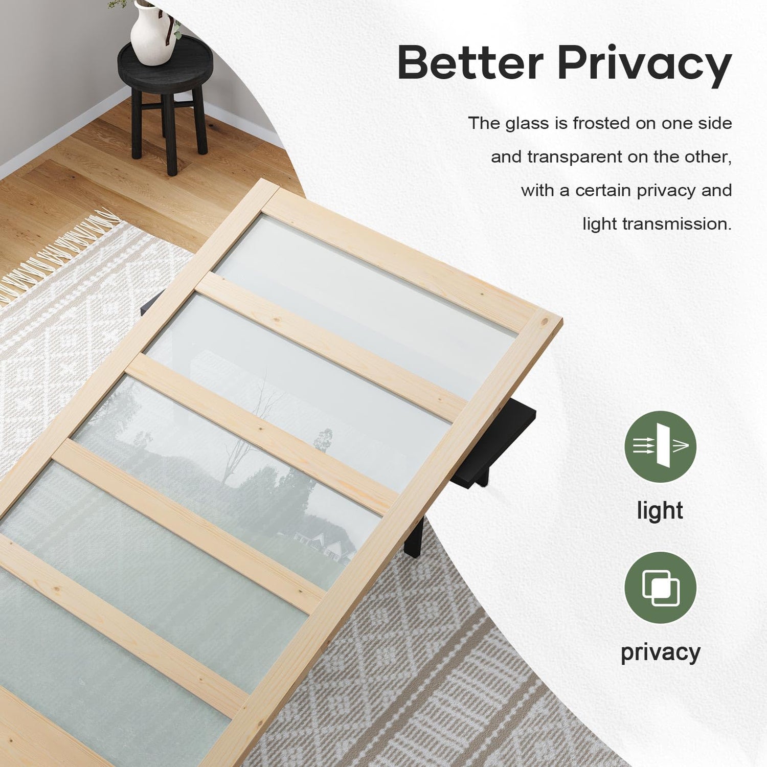 - TEMPERED GLASS: It has high security. When subjected to a strong impact, it can quickly show obtuse-angle particles, thereby protecting personal safety to a large extent. The glass is transparent on one side and frosted on the other, with a certain light transmission and privacy.