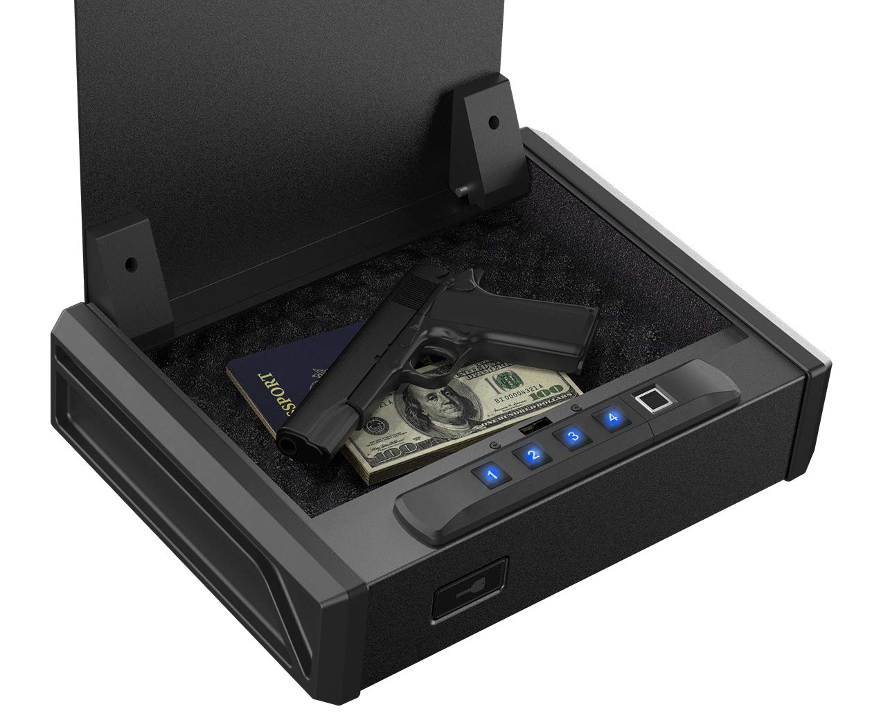 - Handgun Safe: For anyone who owns firearms, safe storage is essential, especially if you have young exploring children or other visiting children who don't understand the potential danger. Putting them in this biometric gun safe is the best and most responsible way to properly secure your small firearms in the home or office