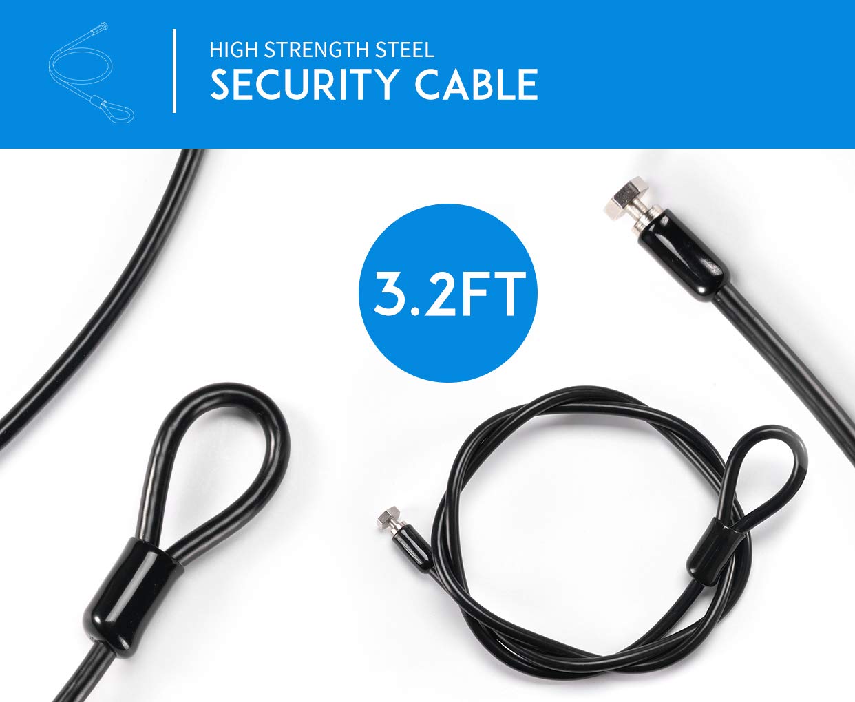 - Secure to Stationary Objects: Includes a 3.2 ft steel security cable for added protection. This steel security cable withstands up to 1, 900 pounds of force
