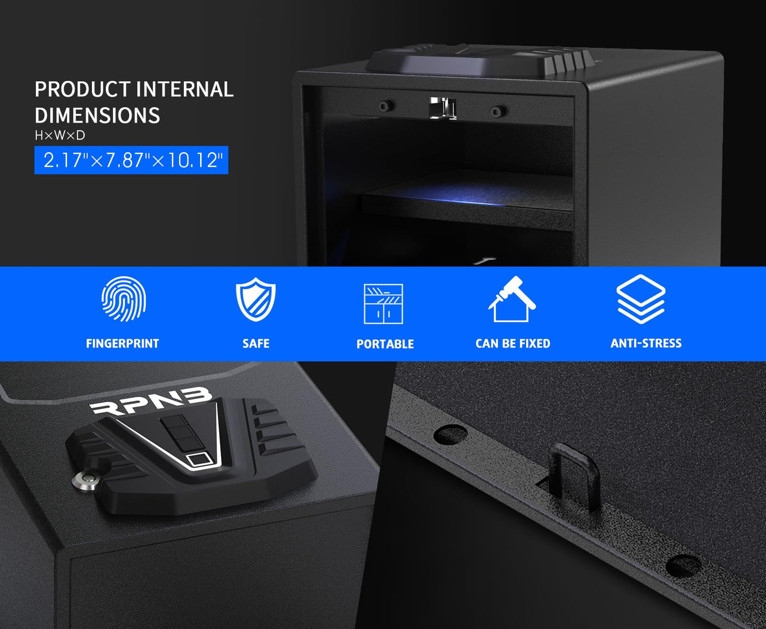 RPNB Gun Security Safe, Quick-Access Firearm Safety Device with Biometric Fingerprint & Digital Key Pad