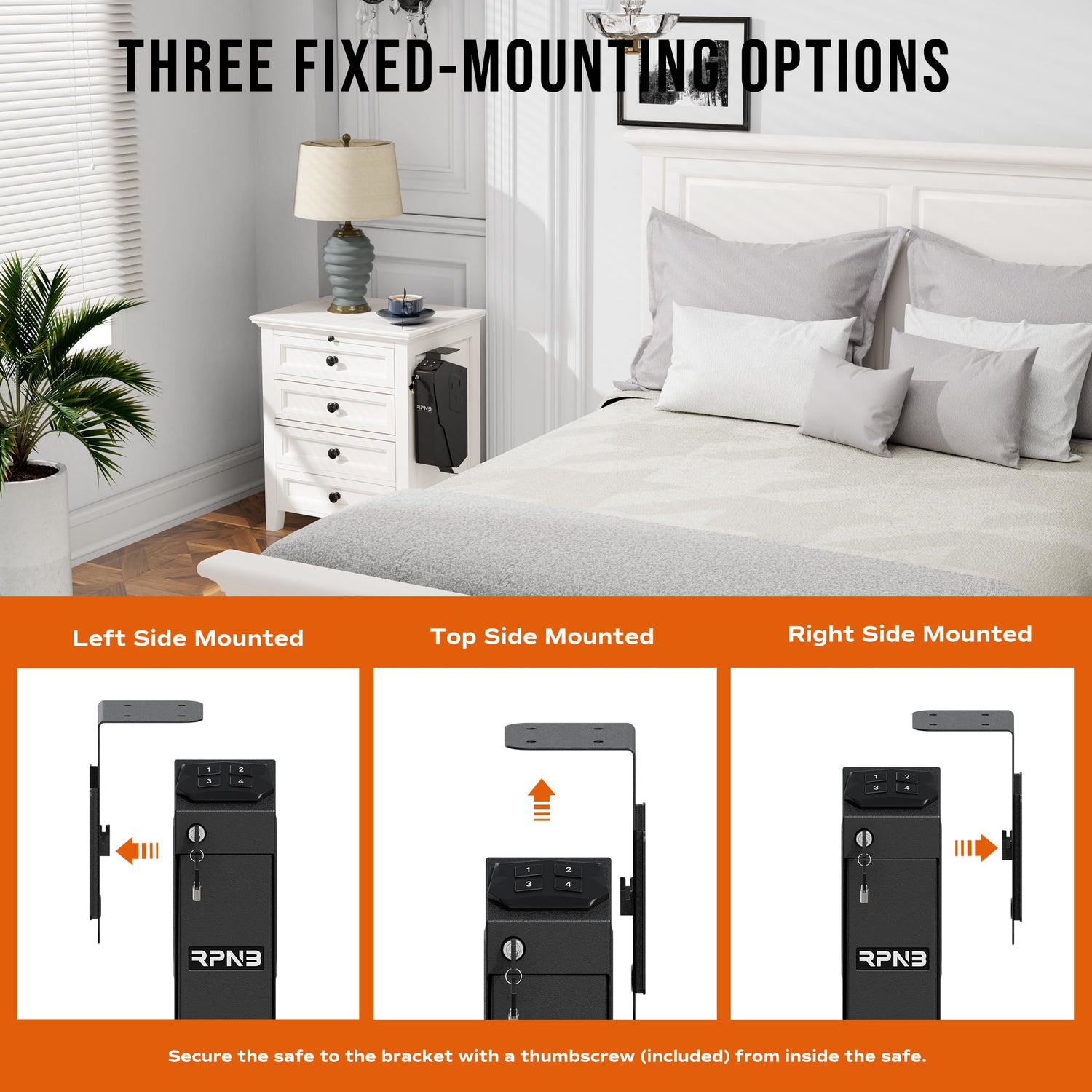 - Desk Mounted Design : Slim Vertical Design stores great under a desk or nightstand, discreetly on a bookshelf, or inconspicuously in a vehicle. For added convenience, mountable from right, left, or top side, depending on desired preference