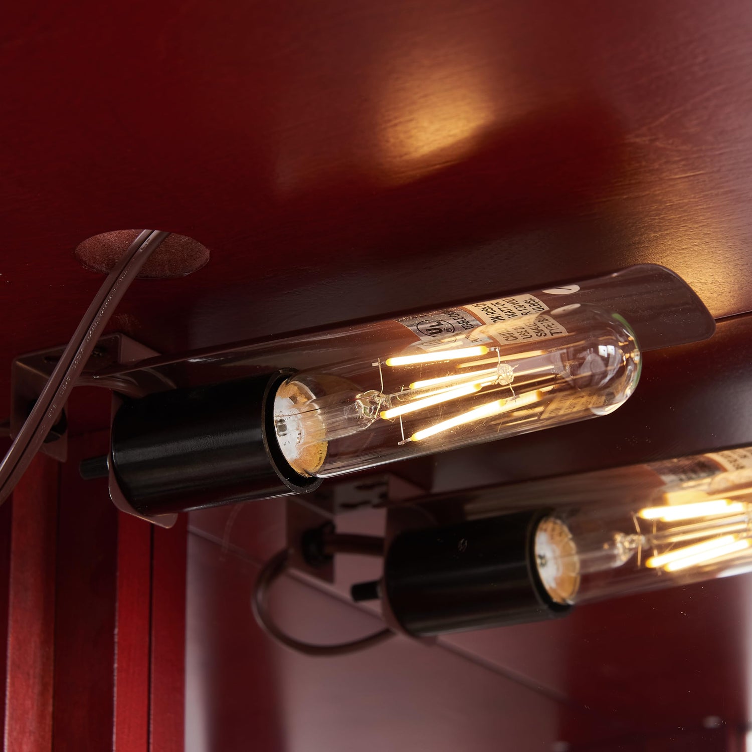 top panel light system, mirrored back, and glass sides magnificently accentuate the aesthetic appeal of your treasures, casting them in a captivating glow. With four adjustable tempered glass