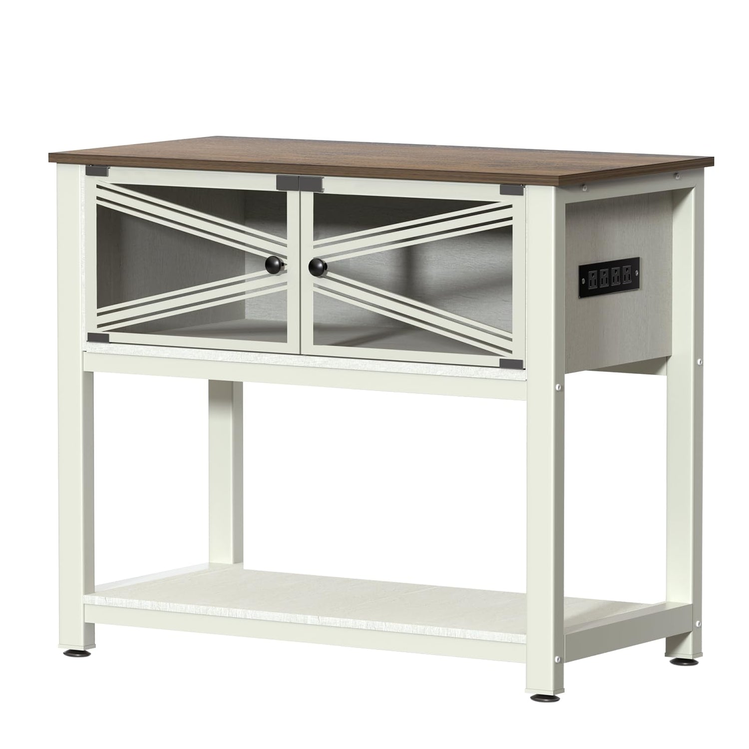 Rresyet 40-50 Gallon Aquarium Stand with Heavy Duty Metal Frame, Fish Tank Stand with Power Outlets, Two Glasses Door Storage Cabinet, Suitable for Turtle Tank, Reptile Tank, White+Brown