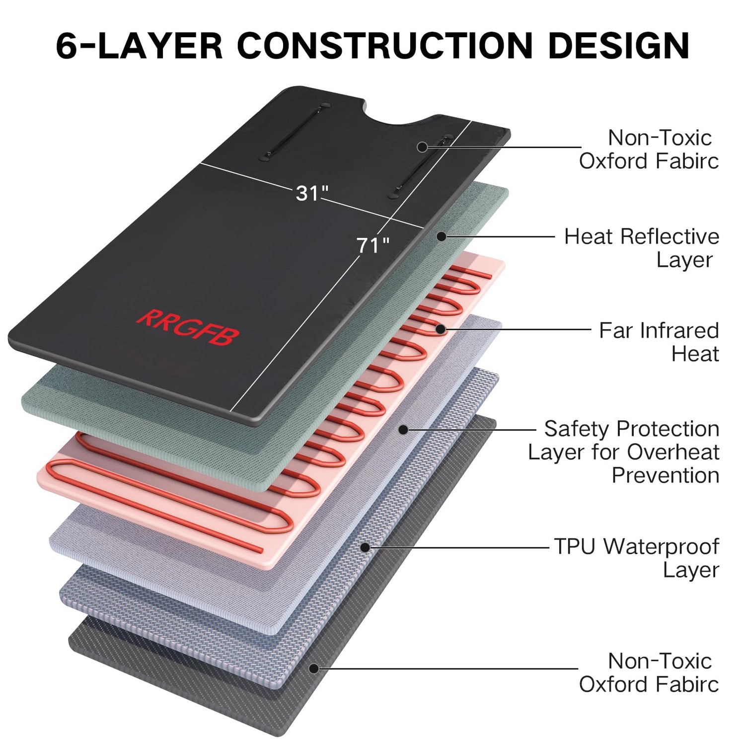 RRGFB Infrared Sauna Blanket, Portable Sauna Blanket for Detoxification, Personal Sauna for Home Relaxation, 1-60 Mins Timer, 86-158℉ Temp Range, 6 ft x 2.6 ft, Oxford Fabric Cover