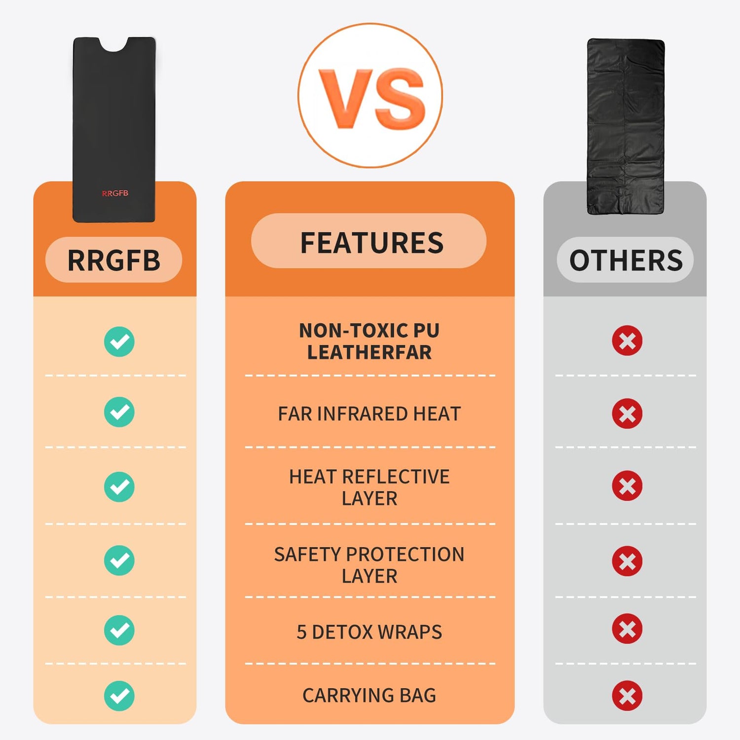 RRGFB Portable Infrared Sauna Blanket, Detox & Relaxation at Home, Adjustable Timer 1-60 Min, Temperature Range 95-167℉, 6 ft x 2.6 ft, Durable PU Leather Cover