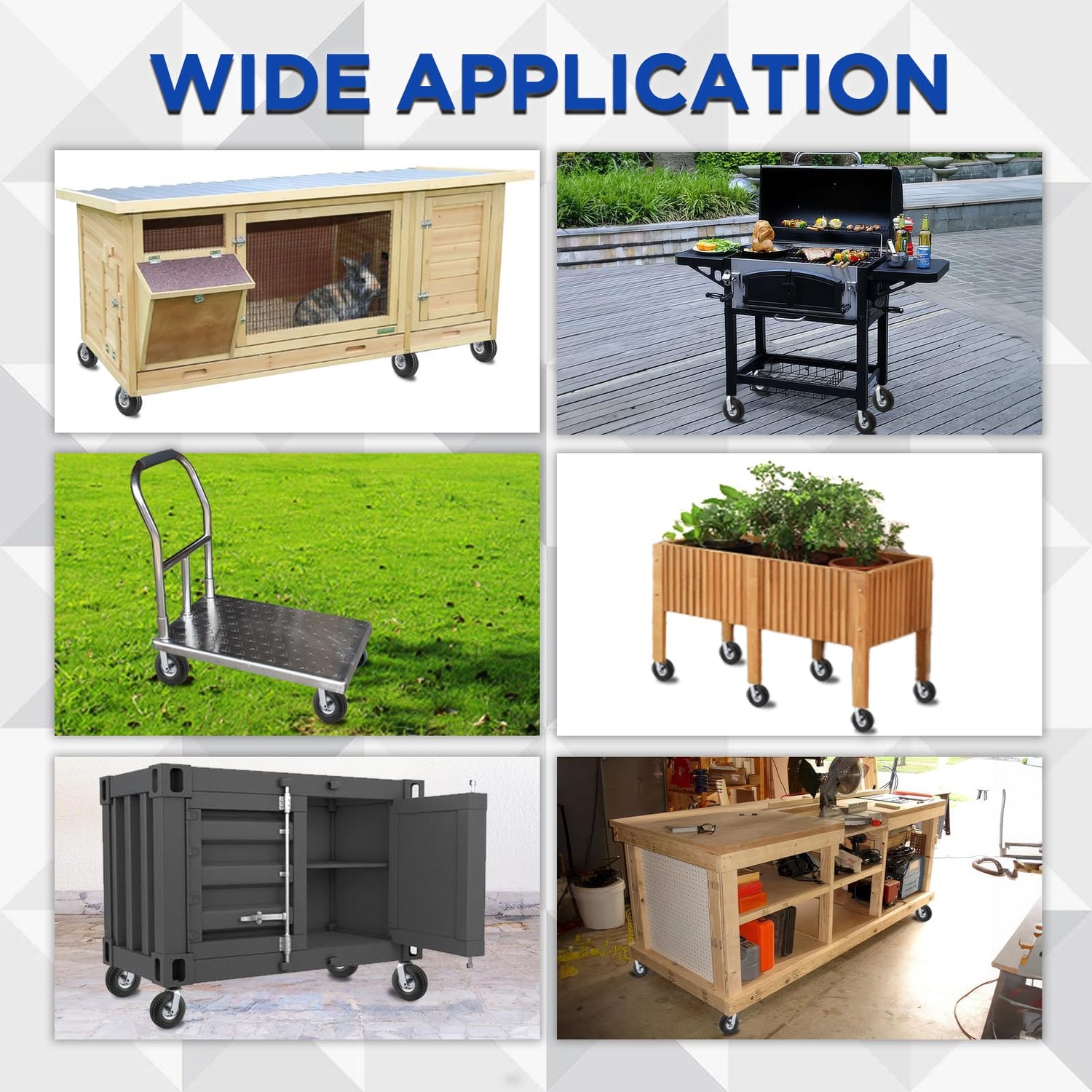 - WIDE RANGE OF USES: The swivel caster wheels can be used for a variety of indoor and outdoor applications such as carts, trolley, dolly, wagon, workbench, outdoor trash can, shelves, outdoor dog kennel, plant bed, furniture and other moving applications