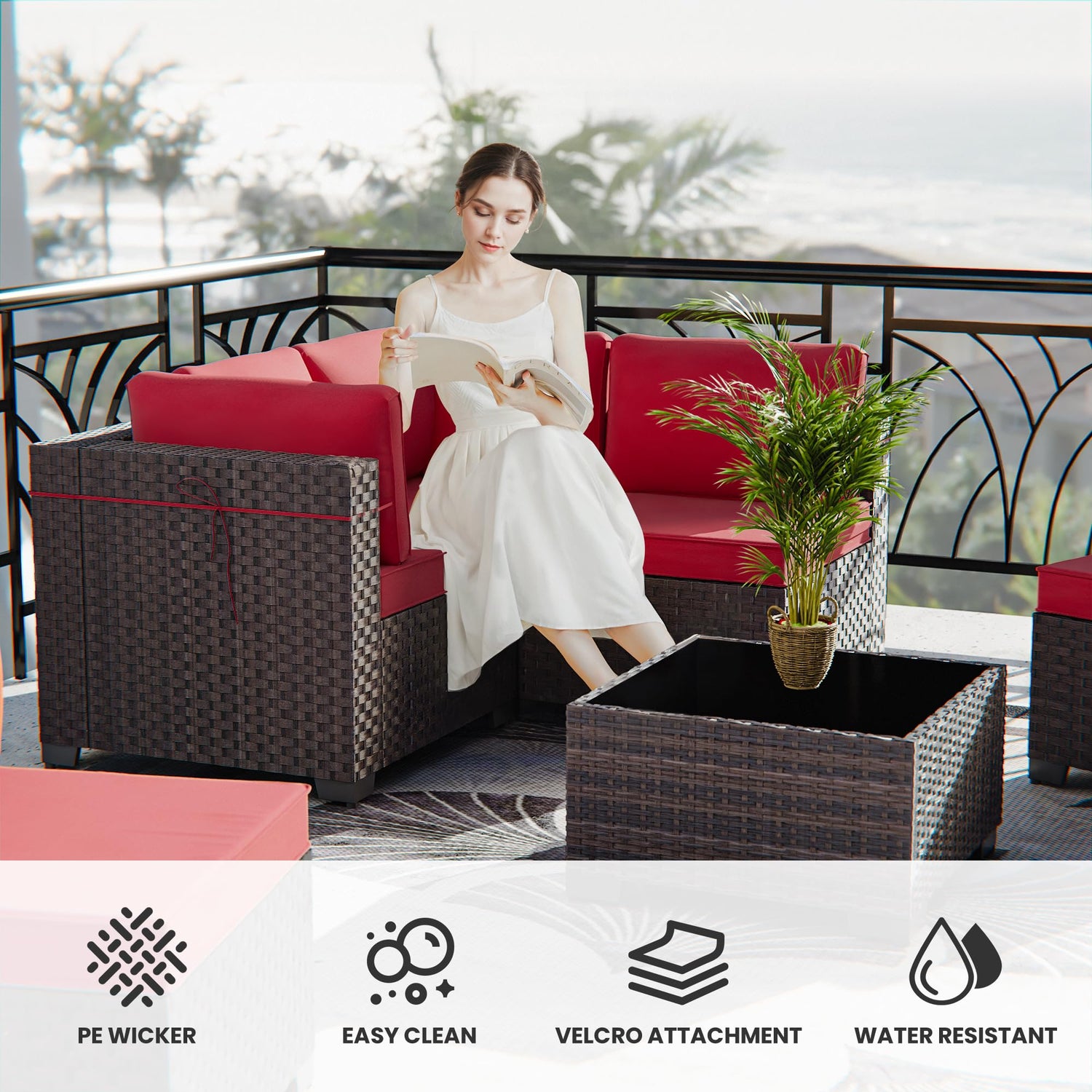 RTDTD 13 Pieces Outdoor Patio Furniture Set with Propane Fire Pit Table Outdoor Furniture Patio Sectional Sofa Conversation Sets w/ETL Approved 43" Gas Outdoor Fire Table & Coffee Table (Red)