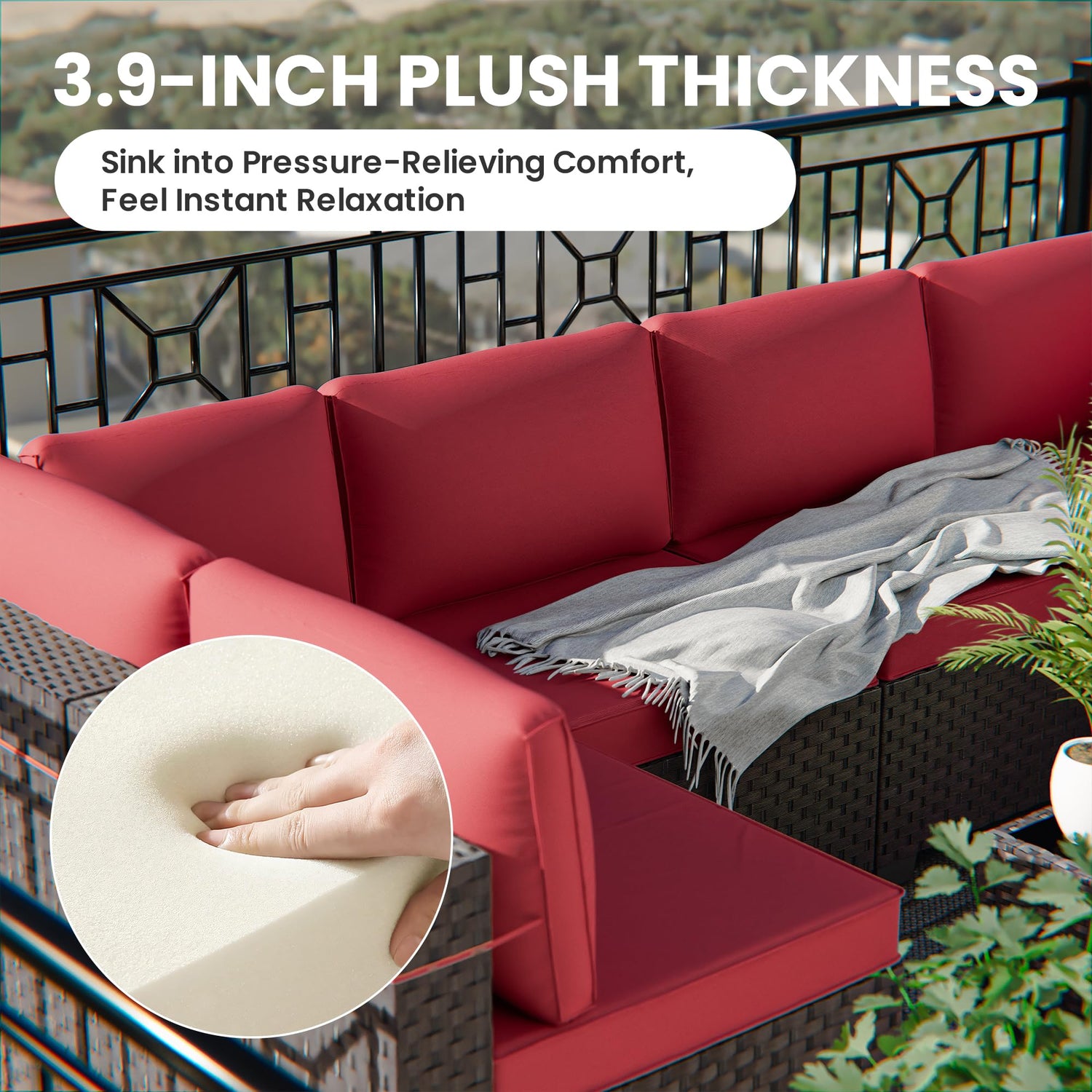 - Exquisite Workmanship: Our rattan is hand-woven by skilled rattan weavers from a selection of quality raw materials, resulting in tight, orderly, even and smooth rattan, making it stronger and more durable. The thick cushions are padded with high-density foam for flexibility and breathability. The UV-protected and water-resistant olefin fabric cover protects against the outdoor elements.