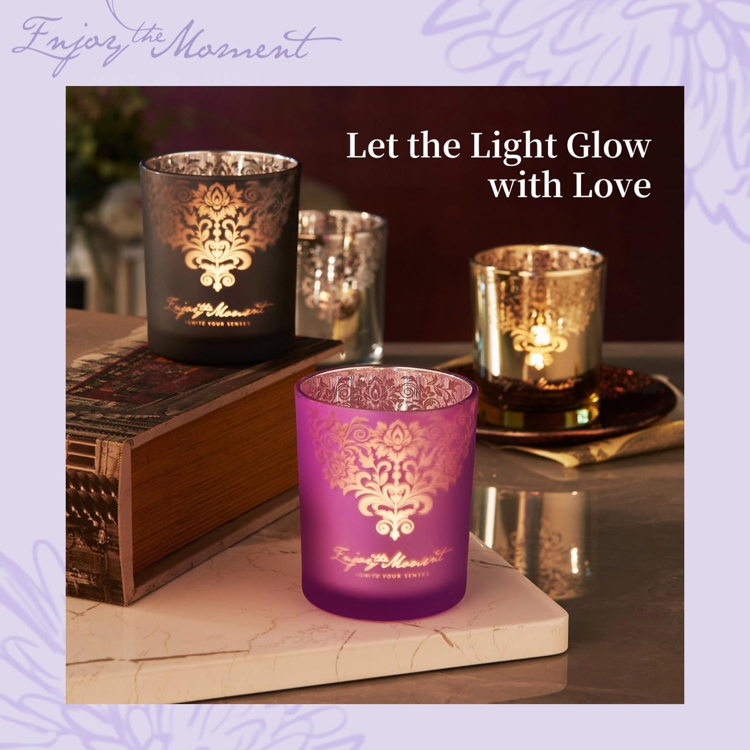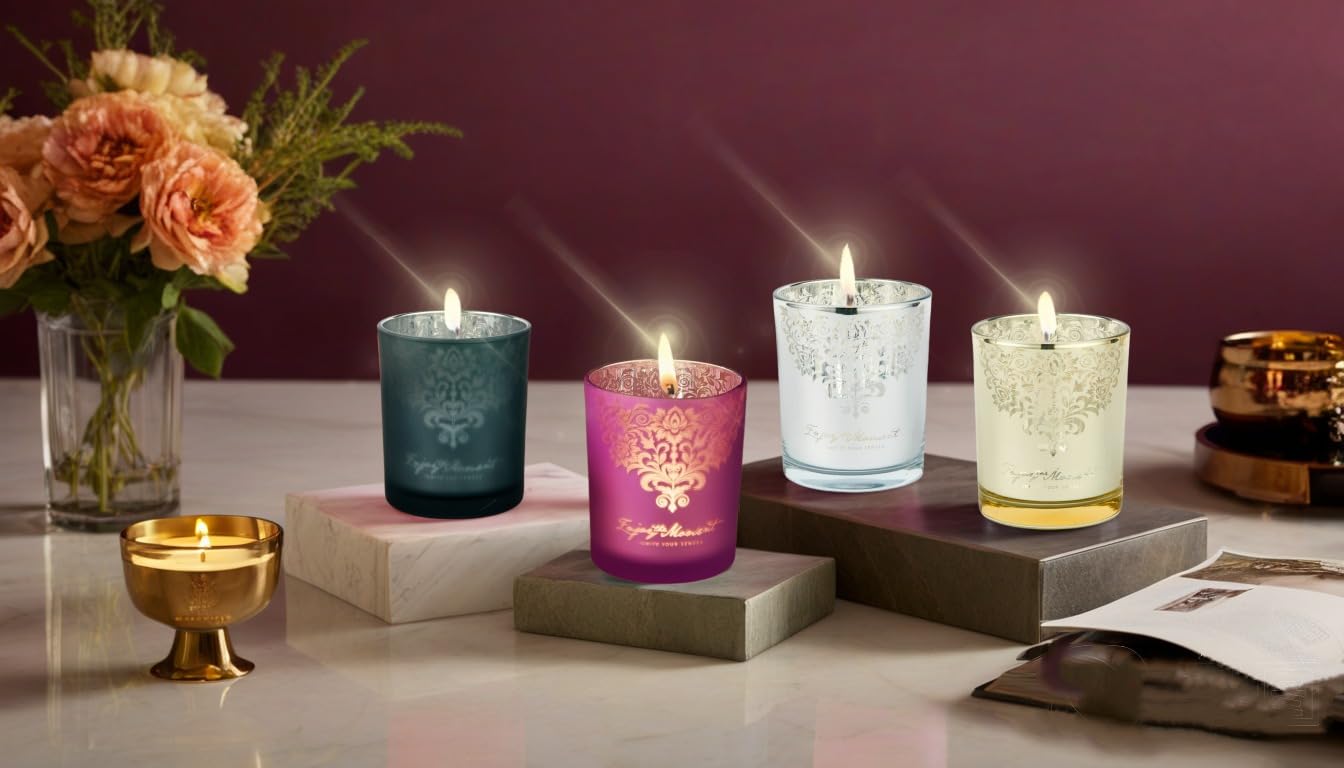 - 2⃣ Exclusive RU HANDMADE Glass Jars – Designed in-house, our 4 elegant engraved glass jars are reusable as beautiful candle holders once the candles are finished. Simply place a tea light inside for a stunning, warm ambiance.