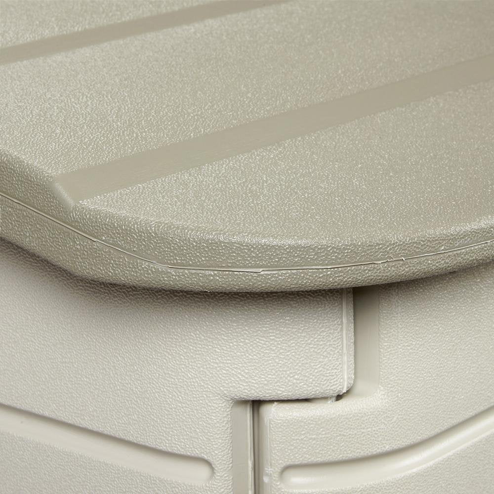 - UNIVERSAL DESIGN: Clean lines and neutral tones blend deck box into any yard or patio. Top of deck box doubles as extra seating or an end table for holding drinks or snacks.