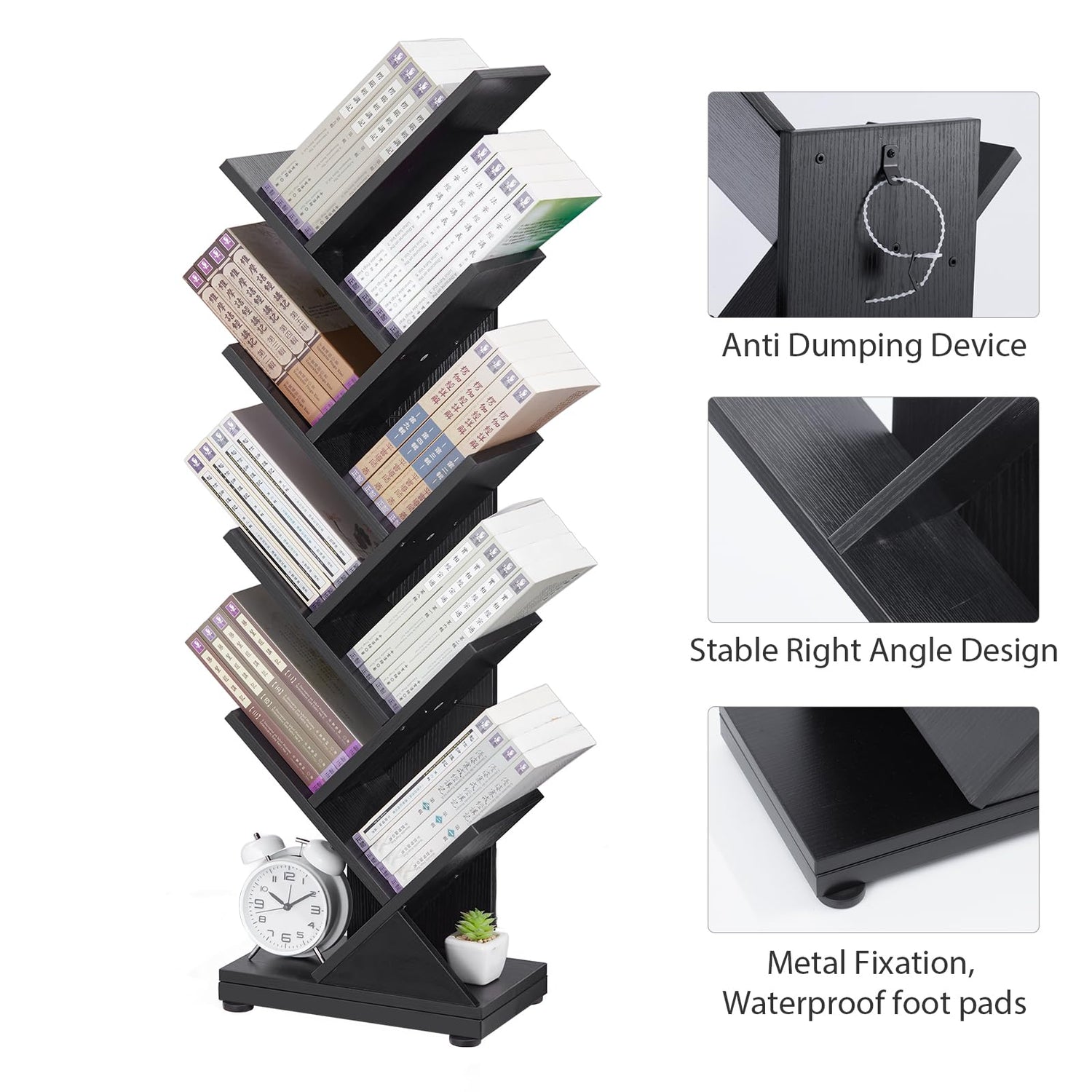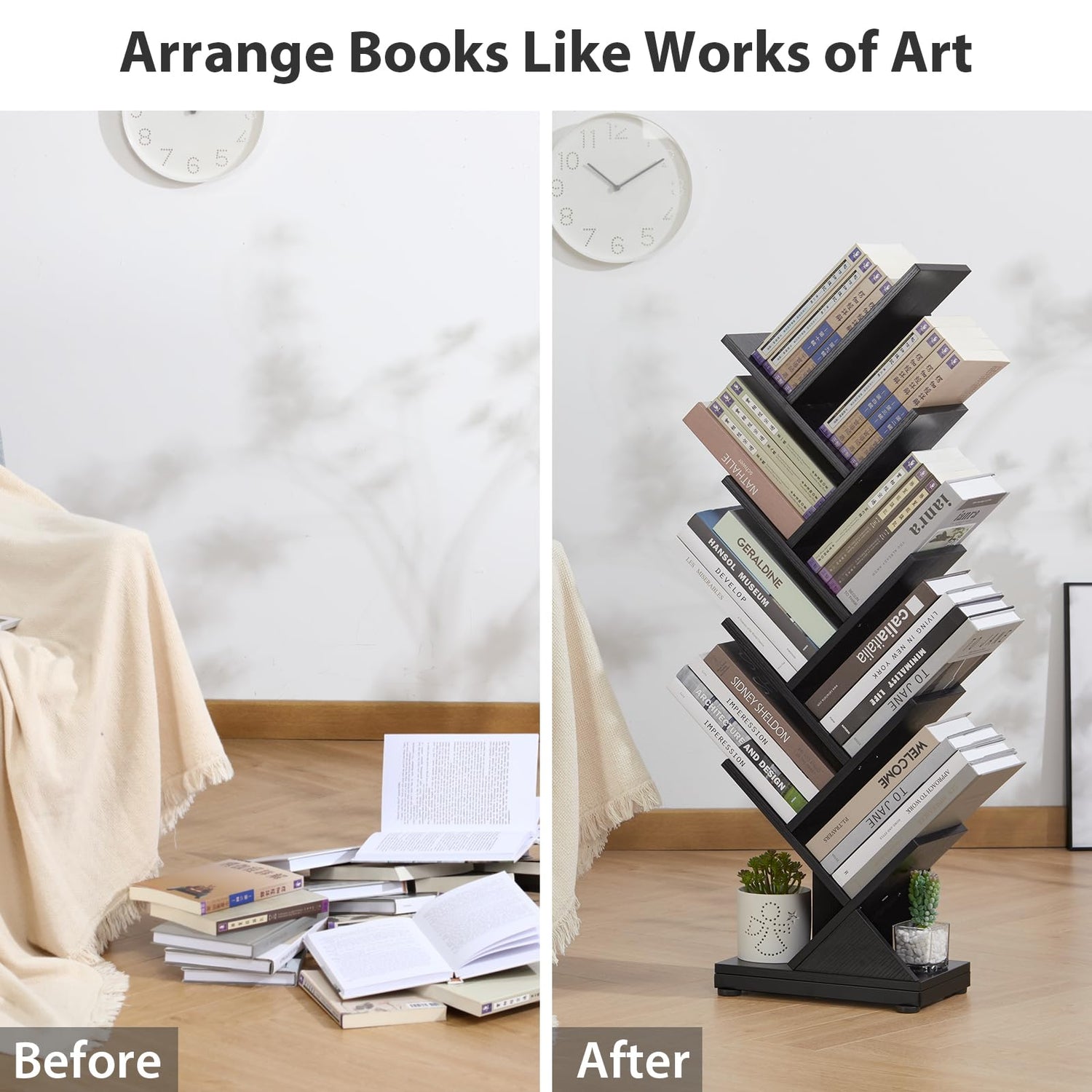 - 【Space Saving & Large Capacity】-The tree bookshelf has 8 storage areas, each storage area can hold 10kg weight things. Keeps your books, decorations, CDs, movies and video games well organized.