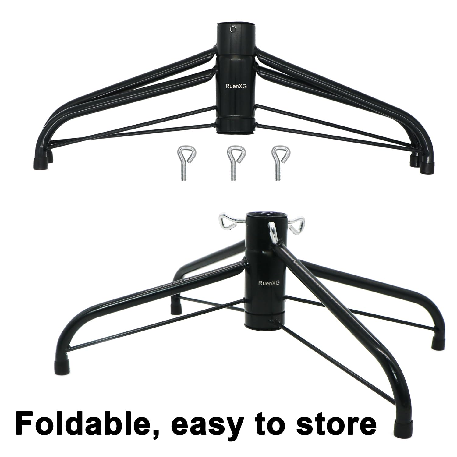 - Easy Installation:1 Open the Christmas Tree Stand -2 Insert the tree into the hole of the stand - 3 Put the 3 thumb screws in the fixed hole, and then fixed. The legs can be folded flat for easy storage.